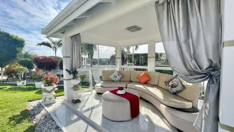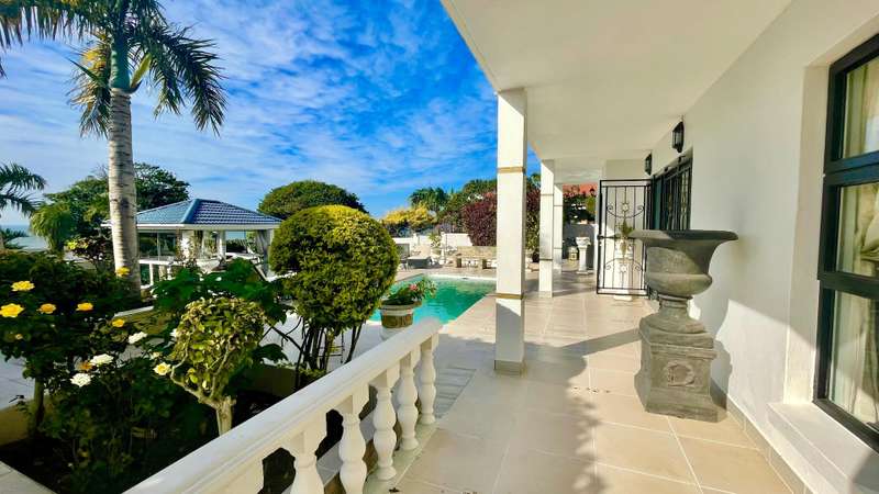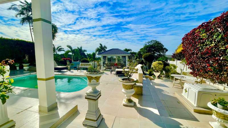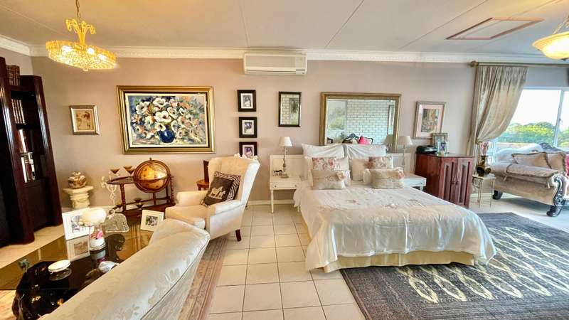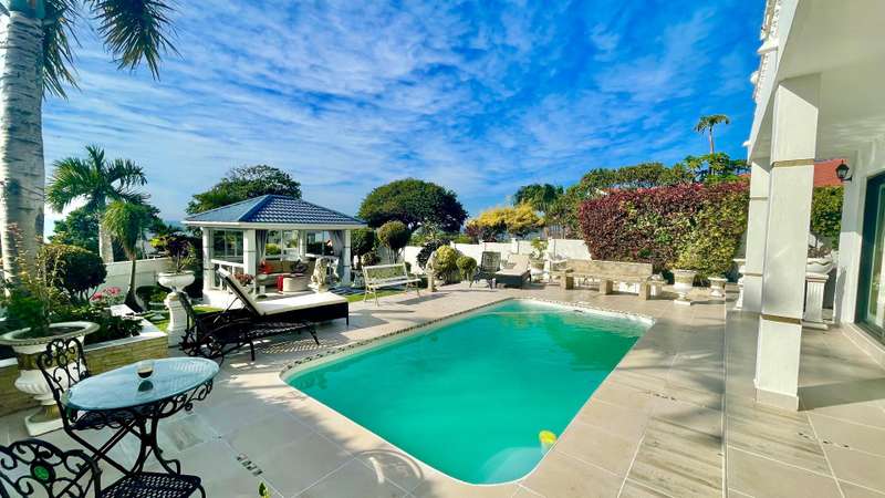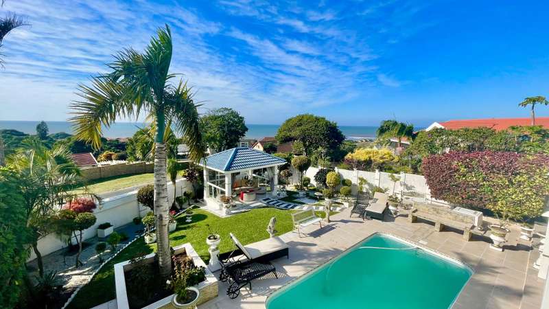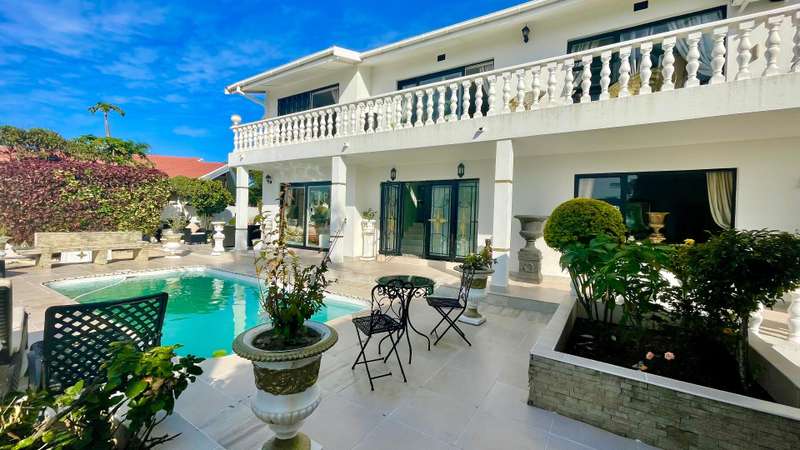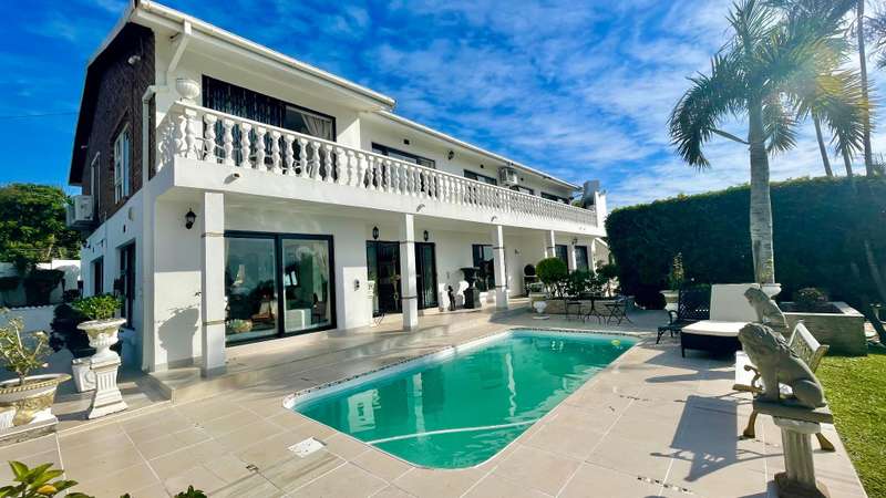 A Timeless Beauty - In a class of its own!! Enter through the grand entrance of this magnificently designed home of pure luxury and elegance. The large open plan wrap around living areas with high quality finishes, are light and bright, and have large windows allowing for lots of natural light and sunlight to pour in. The beautiful staircase leads up to the sleeping quarters which include 2 bedrooms and 2 large luxury guest suites, one with a lounge and study area, both ensuite. 3 bedrooms have access to the balcony with 180 degree sea views. Manicured wrap around garden with a large entertainment area, gazebo and swimming pool. This is an entertainers dream home and the garden is lit up throughout to create a beautiful ambiance. This exceptional property boasts excellent security features with CCTV cameras and an electric fence and is in pristine condition. Perfectly located and close to all amenities including shopping malls, hospitals, schools and beaches.