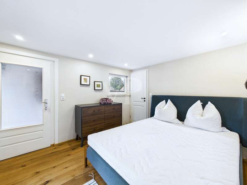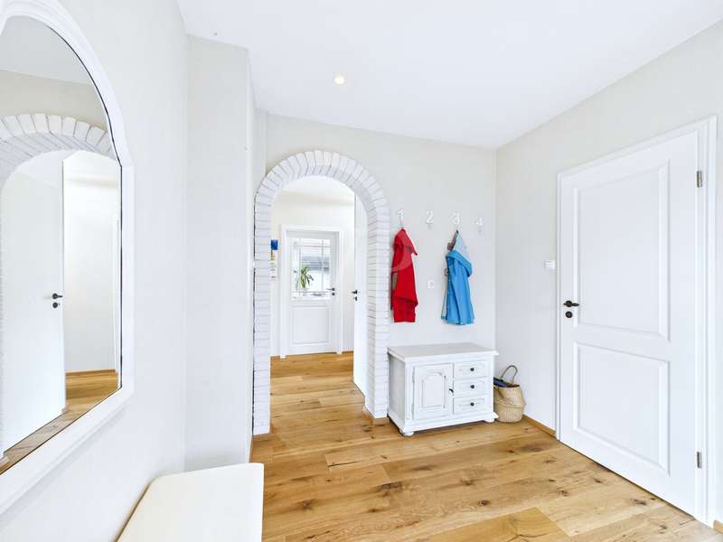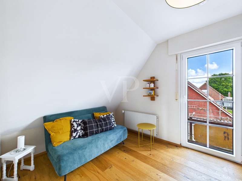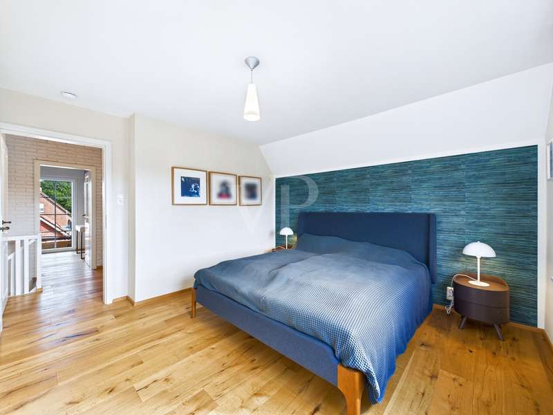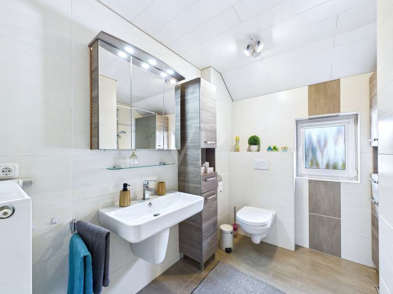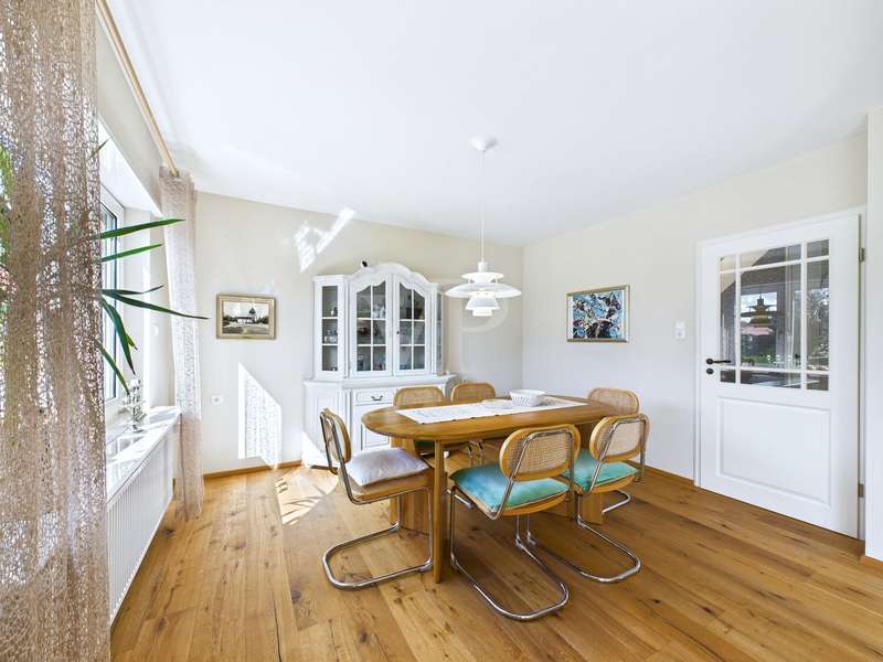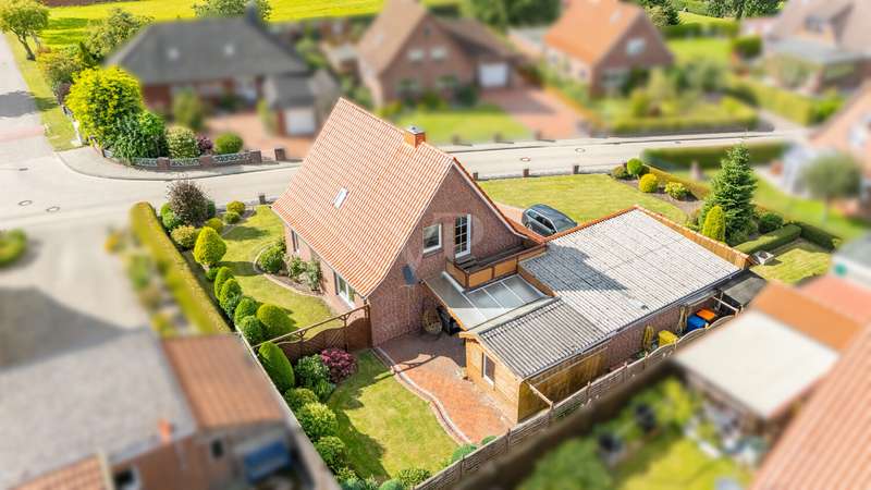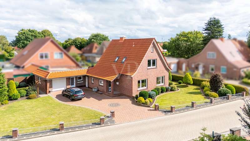 This modernized detached house was built around 1965 on a plot of approx. 718 m² in a central location in Westerholt. The bright and well-designed rooms are spread over a living space of approx. 115 m². Upon entering the property, you first enter the bright hallway, which leads to the spacious living and dining area on your right. Next to the living and dining area you will find the recently fitted kitchen, which lends a cozy and timeless character thanks to the bright motif tiled floor in combination with the as-new fitted kitchen. At the end of the hallway, you enter a second hallway. This leads on to the bathroom and a guest WC. The bathroom has a walk-in shower and was renovated in 2019. Complemented by a window element into the garden, the hallway benefits from sufficient natural light and also offers an unobstructed view of the garden and the sunny terrace. At the same time, two further rooms can be reached from the rear part of the hallway, which can be used individually as a storage or hobby room, for example. The top floor of the property can be reached via a real wood staircase, which is located in the front hallway. The staircase has also been treated with great care and was freshly sanded and repainted some time ago. There is a spacious bedroom on the top floor. Opposite, two further rooms, which are ideal for use as children's or guest rooms, round off the floor plan. To complete the space on offer, the WC located here has been extended with a bathtub and completely modernized. A side room offers further storage space and access to the attic. The property is equipped with external blinds. These can be controlled electrically on the first floor. The property has been continuously modernized in recent years. In addition to the bathroom, the roof was renewed and insulated in 2017. High-quality real wood parquet was laid in the bedrooms and living rooms. Outside, the offer is complemented by a partially covered sun terrace and a balcony. From the terrace, you can access a garden shed, which offers further space for individual uses. The garage next to the property is equipped with an electric sectional door. Come and see this charming property for yourself!