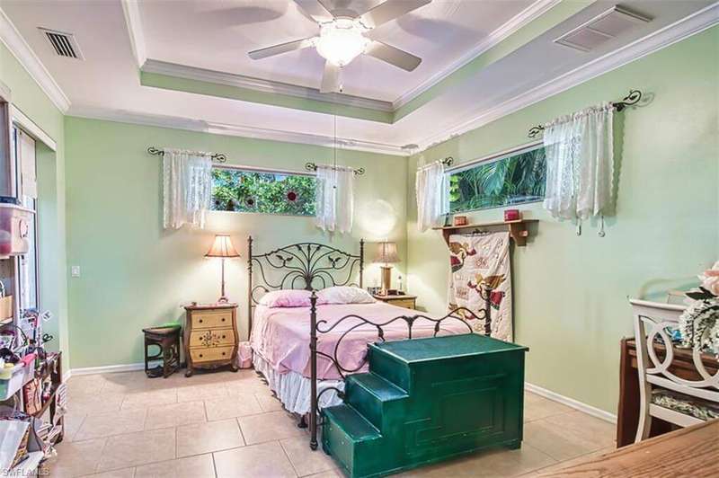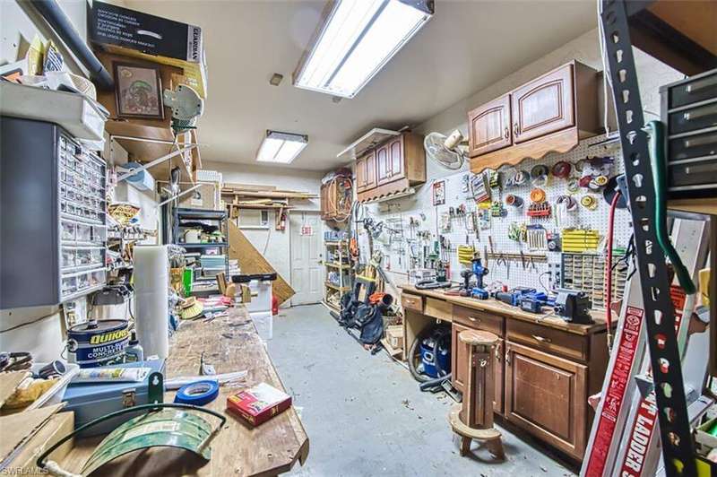 EXTREMELY RARE!! 979sqft 3-CAR GARAGE WITH WORKSHOP OR 4-CAR GARAGE in the GATED COMMUNITY of Laurel Oaks. This 4/2 spans over 1800sqft and features a LOW MAINTENANCE YARD that is hardscaped with mature vegetation, screeened lanai, and a SMALL FENCED AREA FOR PETS to safely enjoy the outdoors. The WHOLE HOUSE WATER SOFTENER, NEWER ROOF (2020), and NEWER A/C (2020) provide you peace of mind. Inside, you'll find fabulous touches like VALUTED CEILINGS, a built-in ironing board, CROWN MOLDING, transom windows, a laundry room with storage and a sink and NEWER W/D, TRAY CEILING, ceiling MEDALLIONS, and more. The kitchen was REMODELED about 10 years ago with WHITE WOOD CABINETS, GRANITE counters, pantry, and STAINLESS STEEL appliances. The tiled PRIMARY WING offers a SPACIOUS bedroom with lanai access, dual closets, dual sinks, large walk-in shower, and private water closet. The 2 back bedrooms are carpeted, giving them a cozy feel. One also has lanai access. The front bedroom with LVT flooring is currently being used as an office. Scoop up this versatile home that has been loved by the ORIGINAL OWNERS for over 20 years and add your personal touch, or have a move-in-ready experience with NEGOTIABLE FURNISHINGS. Enjoy your pool, tennis/pickleball, and more in Laurel Oaks--or venture out to the gorgeous BRIARCLIFF RD for a quick drive to SWFL's best beaches, RSW International Airport, or ample shopping, dining, and entertainment options. All this and more with LOW HOA FEES, LOW TAXES, in this PRIME LOCATION qualify this home as a rated BEST VALUE BUY. Don't delay--schedule your showing today!!