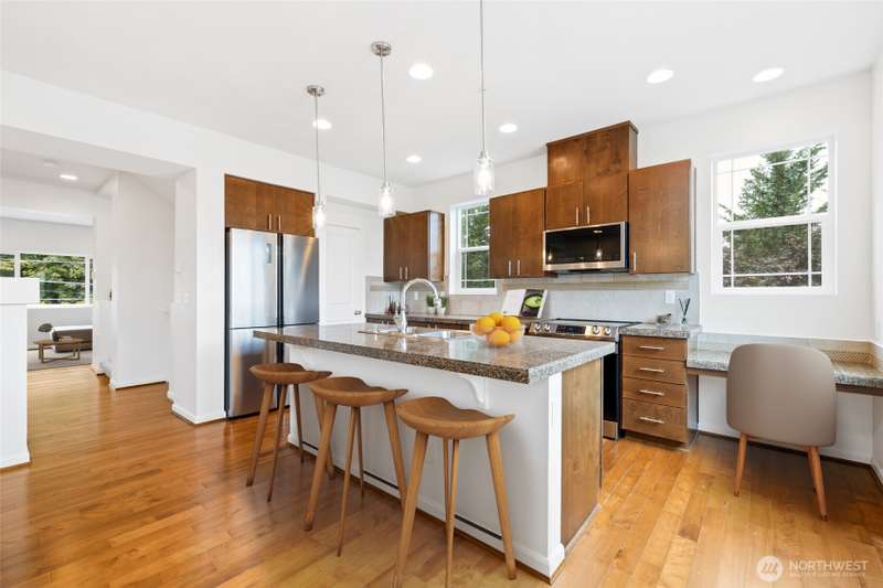Inviting & spacious 4 bed, 2.75 bath end-unit townhome at Dunhill Terrace! Enjoy fresh interior paint, new carpet, along with the peace of mind of a new roof & newly repaved community roads. Main floor features an open-concept layout with high ceilings & rich hardwood floors. Boasting newer appliances, the kitchen flows seamlessly to the dining/living areas & private balcony. Designed for versatility, the lower-level 4th bedroom has a huge 1/2 bath (potential to add tub/shower). Ideally situated, this home offers views, more privacy & natural light, plus it's next to the community park for play, gatherings, or a quick stroll. Best of all, the location is convenient to freeways, public transit, shopping, dining, schools & everyday amenities.