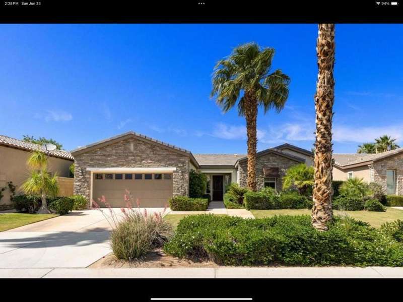RENTED Jan. 1, 2026 thru Feb. 28, 2026. Owner uses home March & April. This property is in a 55 and older community. The floor plan has 3 bedrooms 2 baths a Monarch plan very opened and fully furnished with beautiful furnishings. Shows like a model home. It comes with a private pool and spa, BBQ. Comes with WIFI & Cable TV. The community has a gym, indoor running track, Pickleball, Tennis, Bocce Ball, plus community pools 1 is a lap pool for exercising. With a billiard room. Arts & crafts room. Full 18 hole golf course.A place you can relax and have a massage.
