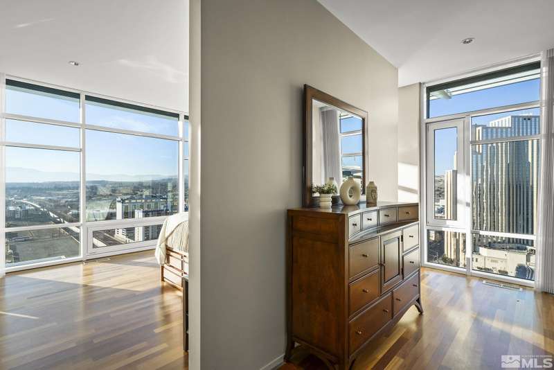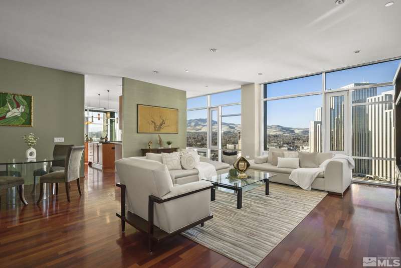 Experience the pinnacle of luxury living in this exquisite penthouse unit, where sophistication and comfort blend seamlessly against the backdrop of breathtaking panoramic vistas. This home is an ideal sanctuary for the discerning buyer within its generous 3300 sq.ft with a focus on open, airy spaces and an abundance of natural light streaming through floor-to-ceiling windows with stunning river and mountain views. The chef's kitchen is a culinary masterpiece, equipped with high-end GE profile appliances and ample room for entertaining. Enjoy effortless living with automated window coverings and spacious walk-in closets in every room. The primary suite invites relaxation with a jetted tub, creating a serene retreat from the bustling world below. Residents are welcomed into a Zen-inspired lobby that exudes tranquility, staffed with attentive 24-hour desk attendants ensuring your comfort and security. Outside, the pool terrace rivals any resort, featuring two hot tubs, five gas grills, a spacious lap pool, and a clubhouse perfect for hosting memorable events. Fitness enthusiasts will appreciate the expansive 24/7 gym, the largest among the city's high-rises. Additional conveniences include bike storage, 2 personal storage units (one just down the hall), and 4 secured parking spaces right by the elevator on the first level. This urban sanctuary offers a variety of communal spaces, including an owner's lounge, library, and a garden deck where you can enjoy the downtown views and festive fireworks displays. The Montage's prime location places you just blocks away from cultural hotspots, the Truckee Riverwalk, and Reno's vibrant Midtown district, with its eclectic mix of dining, shopping, and entertainment. Experience a lifestyle of luxury and convenience at The Montage—where your new home awaits amidst the energy and excitement of downtown Reno. (photos of pool area are original, but similar features will be on the new deck.)