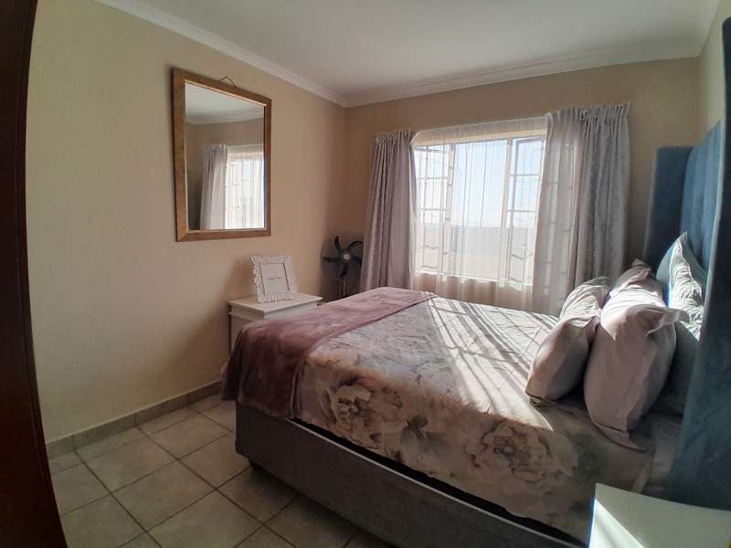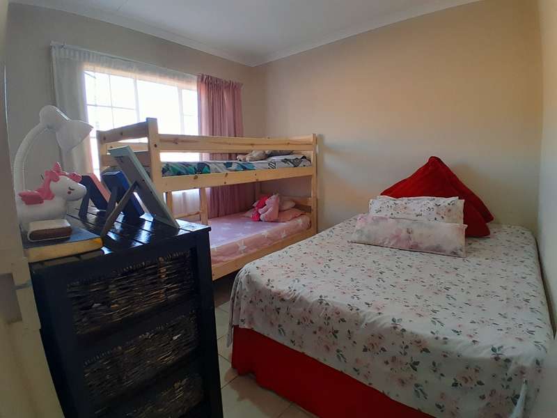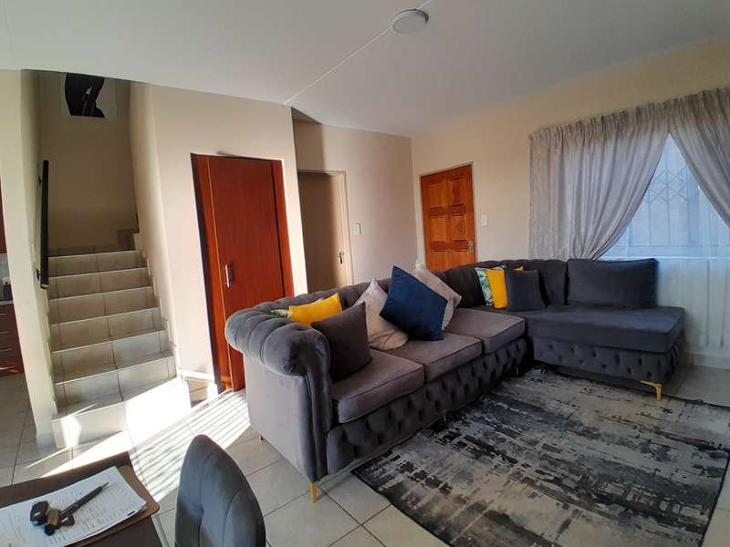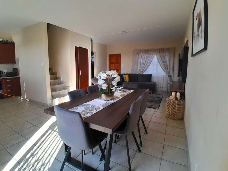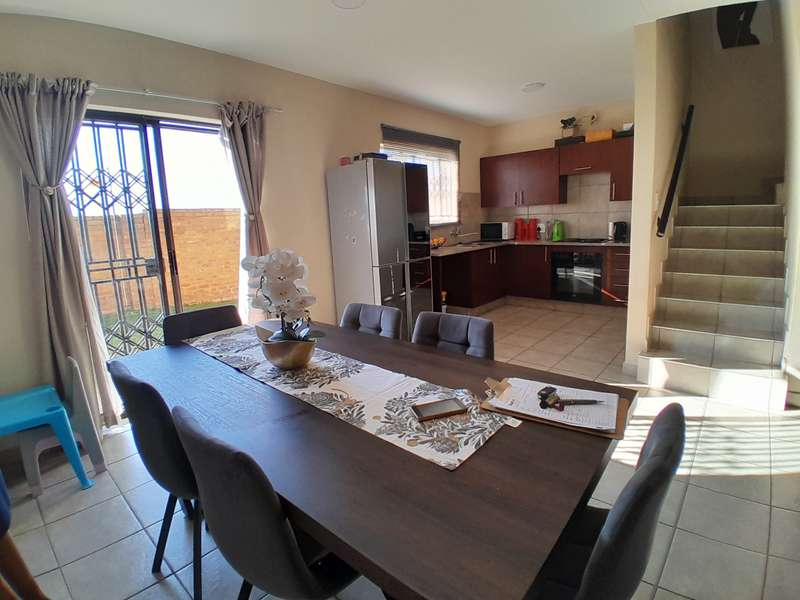 This property is welcoming, it boasts three bedrooms, open plan kitchen, lounge / Dinning with a common bathroom. When entering this property you are welcomed to a lounge / TV area, dinning, open plan kitchen with modern cupboards, enough room for appliances, common bathroom for three bedrooms up stairs Double lockup garage. The estate has a clubhouse with kids play area and pool. With fibre Please book sometime to view this magnificent property before its too late. You snooze you lose.