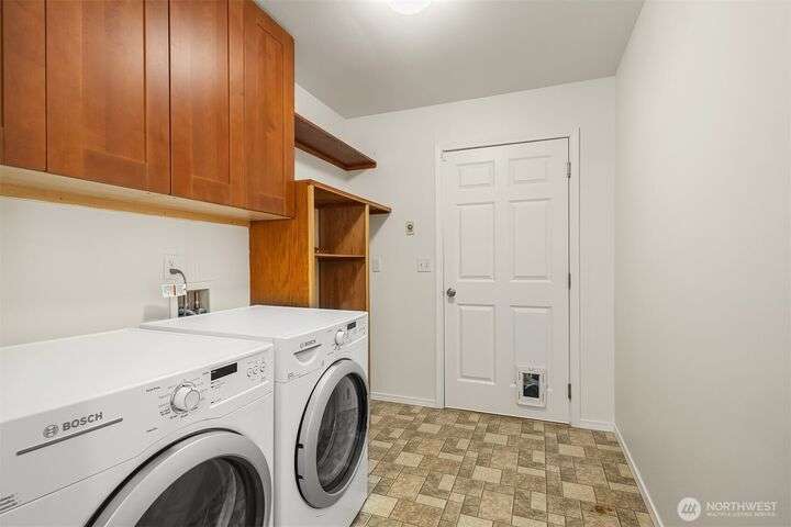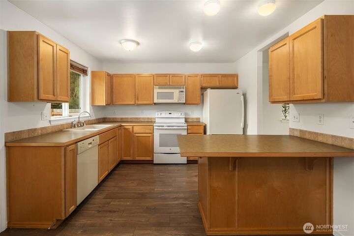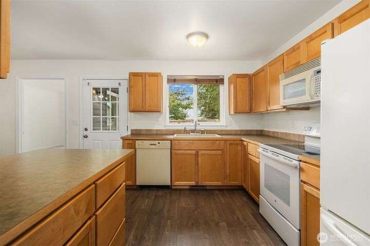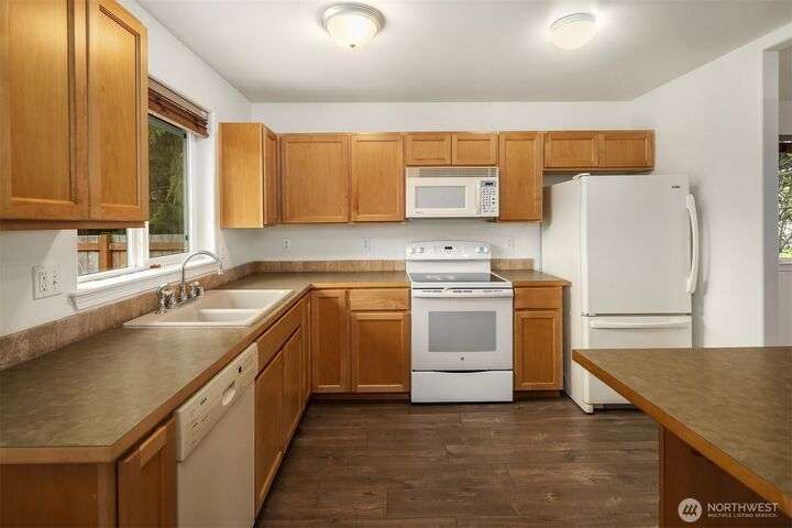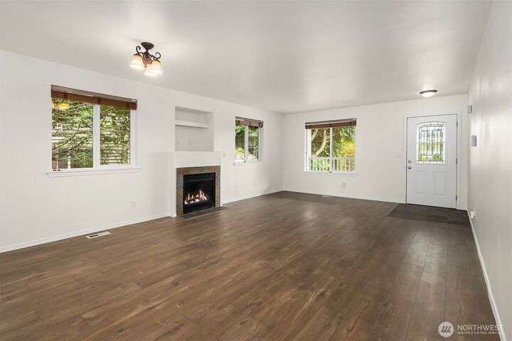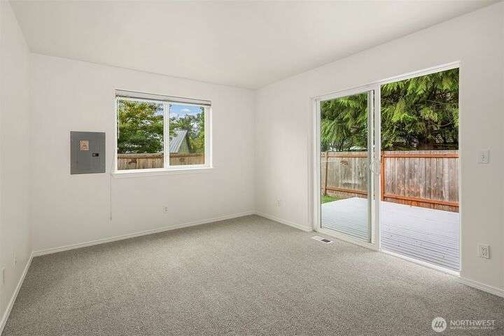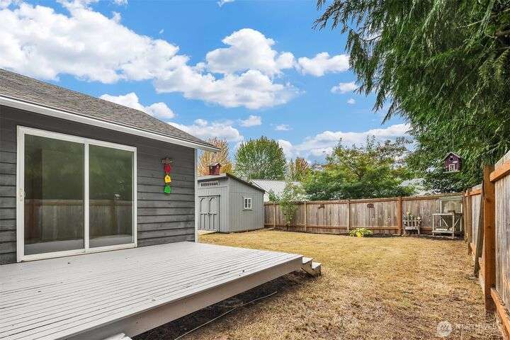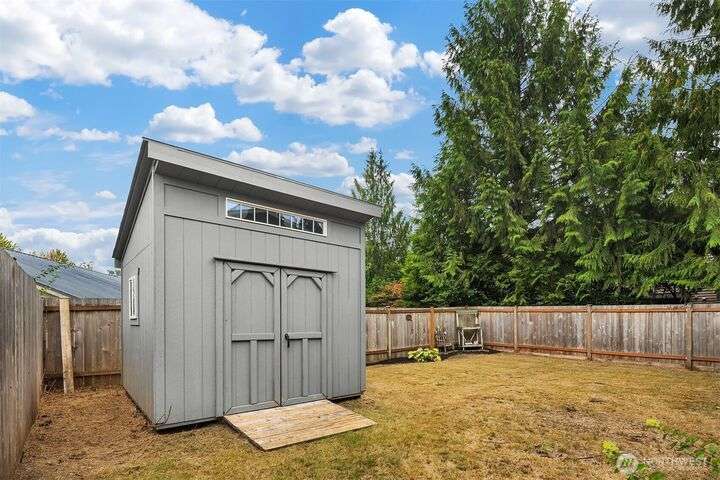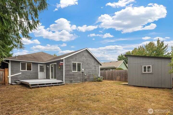 Newer 2005 Craftsman rambler in prime location downtown Monroe just a block from the Skykomish River Park. Very livable with 3 bedrooms, 2 full bathrooms, primary suite features a 9' walk-in-closet & attached ensuite bath. Floor plan includes both living and dining rooms, plus a full-sized utility room with cabinets. Beautiful engineered wood floors in the kitchen, dining & living areas, plus a gas fireplace. The entire interior was professionally painted and all new carpet installed, ready for move-in. Spacious 2-car garage with room for extra storage. Ideally situated facing South, the fully fenced yard gets sun all day. High quality 10x10 outbuilding was framed in place, not a kit. Newer efficient gas forced-air heat & A/C to keep cool.