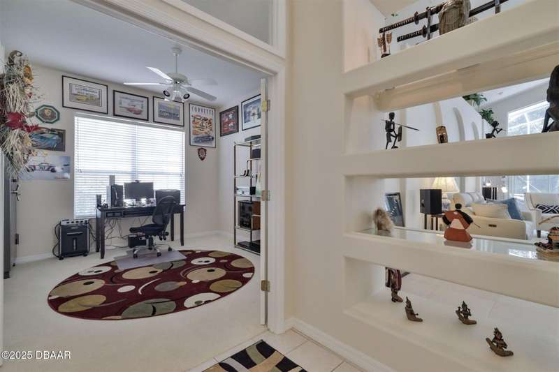 You couldn't ask for a better place to live than this sought-after community, where the scenic drive to Whisper Glen takes you through The Loop beneath a canopy of majestic oaks. Arrive at your destination and be greeted by stately double doors opening into a tiled entryway and a bright, spacious living room. Italian tile flows throughout, complementing the neutral color palette and natural light streaming through a wall of sliders and transom windows. The Chef's Kitchen has been beautifully updated with sleek gray-and-white granite counters, a deep single-basin sink, stainless steel appliances (2020), glass backsplash, under-cabinet lighting, and crisp white cabinetry. A breakfast bar and caf�© nook overlook the peaceful, tree-lined backyard.Your Owner's Retreat features a private bath with dual sinks, a walk-in shower, and a relaxing garden tub. The split-bedroom layout ensures privacy for visiting guests, while one guest room with double doors offers the perfect spot for visiting guests, while one guest room with double doors offers the perfect spot for a home office or TV room. Just off the kitchen, the formal dining room is ideal for family gatherings.Practicality meets convenience with an inside laundry area that accommodates front-load machines and offers built-in shelving. Car enthusiasts will love the oversized garage with abundant cabinetry, a walk-in attic with ample storage, and room for two full-size vehicles plus motorcycles, a golf cart, or other toys.Step outside to the huge screened lanai, the perfect place to savor your morning coffee while enjoying serene, wooded views. Additional highlights include a premium WKL shingle roof (2018), sprinkler system, and well-maintained landscaping by the Whisper Glen sub-association. (Refrigerator does not convey but a stainless steel refrigerator will be in the house.)Halifax Plantation is more than a neighborhoodit's a lifestyle. Enjoy golf, tennis, fitness facilities, a pro shop, clubhouse, and restaurant, all just a short walk away.