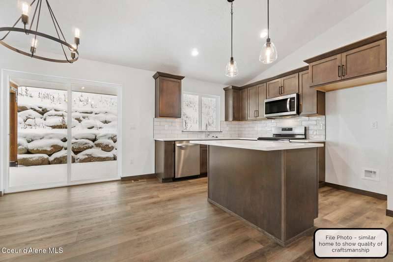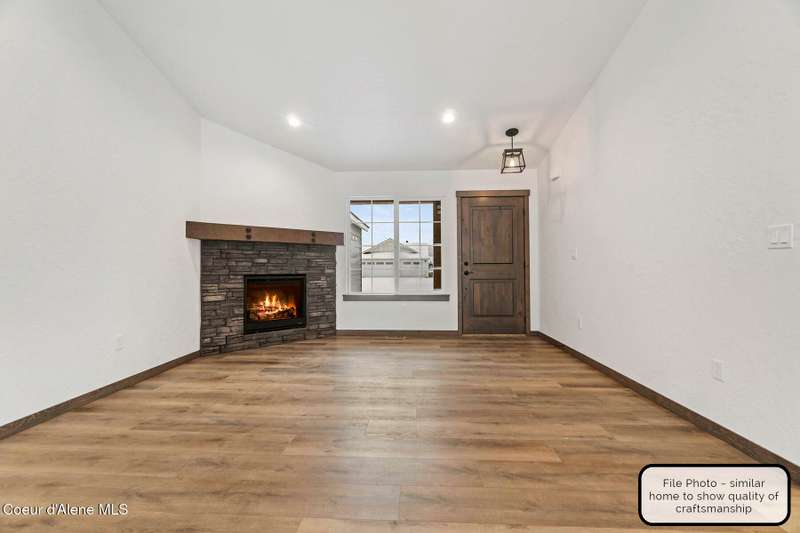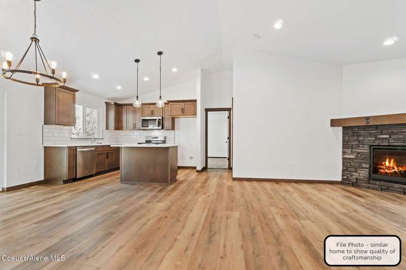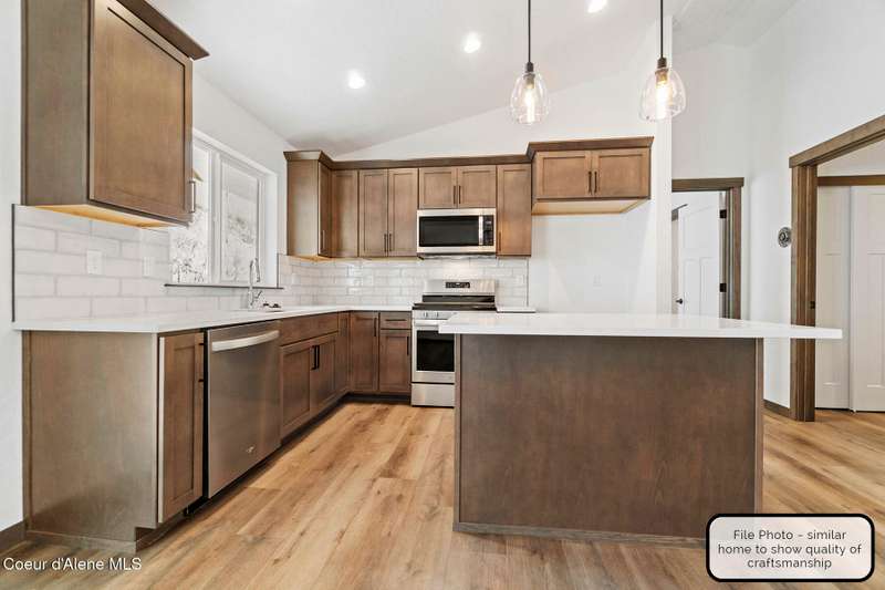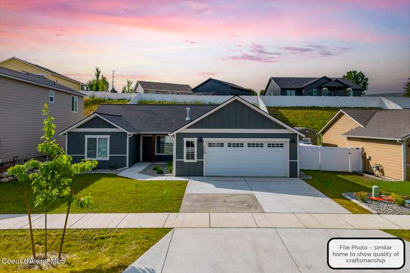 A tastefully designed single-level home that is bursting with appeal. Inside you'll discover an open-plan layout with a generous 1592 sqft of living space. The living areas feature gorgeous luxury vinyl wide-plank flooring underfoot, crisp white walls and charming wood detaining throughout. The modern kitchen, you'll find quartz countertops, ample cabinetry, a double fridge cavity and an island with seating. All four bedrooms enjoy plush carpet underfoot, the primary has a walk-in closet and ensuite, while the other three bedrooms feature built-in closets and are just a few steps from the main bathroom with quartz countertops. A well-equipped laundry adds convenience, as does the double garage with extra storage space. Also a tankless water and a Nest thermostat. Covered front and rear patios plus front yard landscaping with sprinklers.
