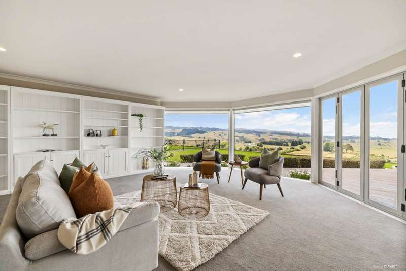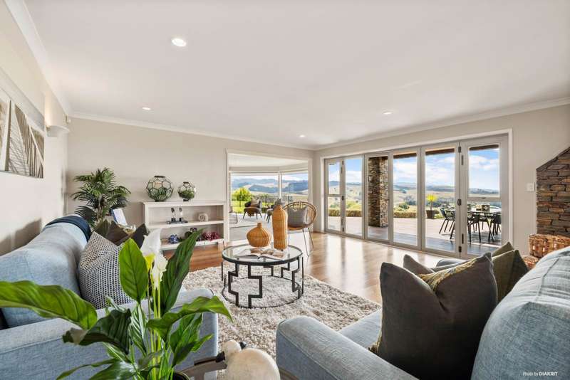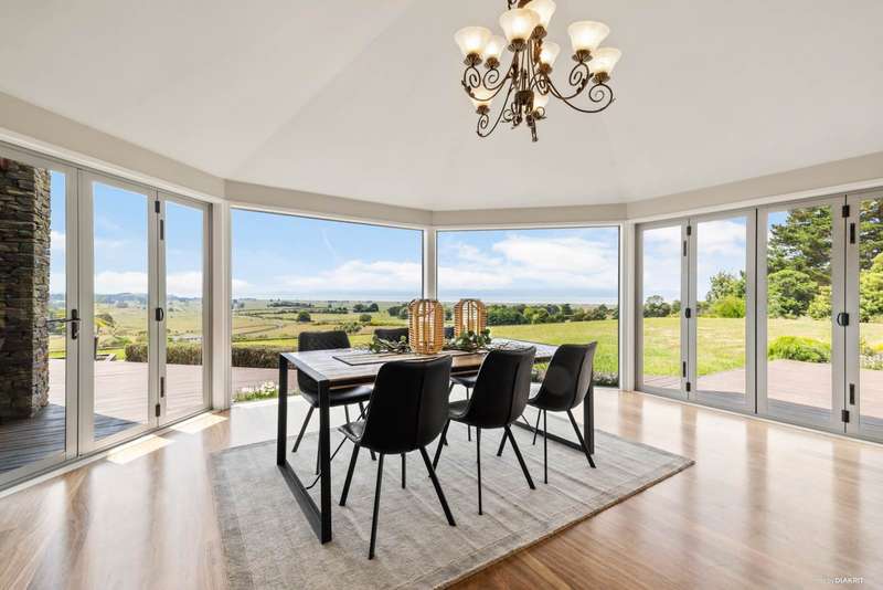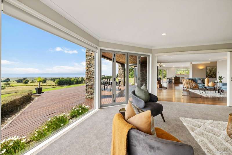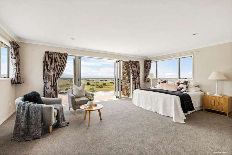 Often admired this stunning home sits on 4.613ha atop a sheltered rise and has the most awe inspiring and breath taking sea and Coromandel views. Along a private tree lined driveway and sweeping up past the duck pond you will reach this beautifully designed five bedroom home. With its classic country board and batten and feature schist architecture this home was built exactly for the panoramic views and you could not ask for a better location. Designed for family living this 359sqm home has a spacious entrance hall which opens out to the magnificent entertainment and main living rooms. Beautifully featured the massive bay windows have unequalled 180 degree elevated rural and coastal vistas. The dining area enjoys the best of these views and adjoins the kitchen which has been recently refurbished. With its top quality appliances, large work spaces, butlers’ pantry and tasteful country style tones it’s sure to be the centre for family gatherings. The spacious family lounge with its schist wood fire fireplace is a lovely cosy place in Winter. A barn style door separates the formal lounge so it can be opened out for large family gatherings or closed off for a wonderful private and relaxing space. With access to the large covered and sheltered deck from all the living rooms you can spread out to entertain family or friends with the outside fireplace roaring and the stunning back drop views. Along the hall on the ground floor are four very good sized double bedrooms with their own wonderful views. With two family bathrooms, one is co joined by two of the bedrooms creating a guest or extended family option. Upstairs is the spacious and luxurious master suite. The walk in robe is spacious and the ensuite boasts a shower and spa bath. Best of all is the glorious deck which is not only private and spacious but offers the most expansive views of them all! The laundry is alongside the double internal garage and there is a separate office if you can work from home. The land is suitable to run a few cattle or a horse or two. Good fences and there is a bore. Many mature trees and shrubs complete the ambience of the property. The triple bay garage has power and an additional wash down area and extra storage. A little down the driveway there is a two stable horse block with a tack room. It has its own water tank and a small chook run with hutch. Surrounded by beautifully manicured lawns, an immaculate driveway and a well built haha this home certainly makes its presence felt. An above ground pool and plenty of outdoor spaces make this a truly lovely family home. For schooling there is a bus to Mangatangi Primary and zoned for Hauraki Plains College for further education. Close to many local attractions, Waharau Regional Park and some of the best fishing in New Zealand on your doorstep, there is a certainly a great outdoors to explore and enjoy right here. Auckland is about an hour and other towns like Pukekohe and Thames are about 30 - 40 minutes away. Kaiaua Village a few minutes down the road has a busy local boating club, plenty of fishing competitions and Sunday markets. A garage with full mechanic workshop, two shops and a great pub with family restaurant. If beautiful home and magnificent views are a priority and you enjoy having space and room to enjoy then this is the property for you.