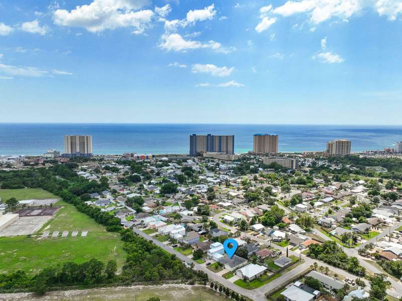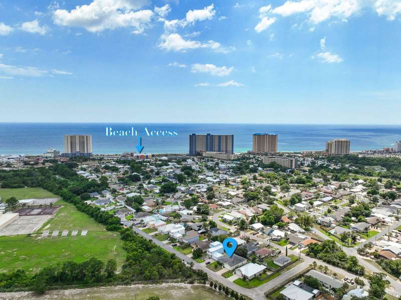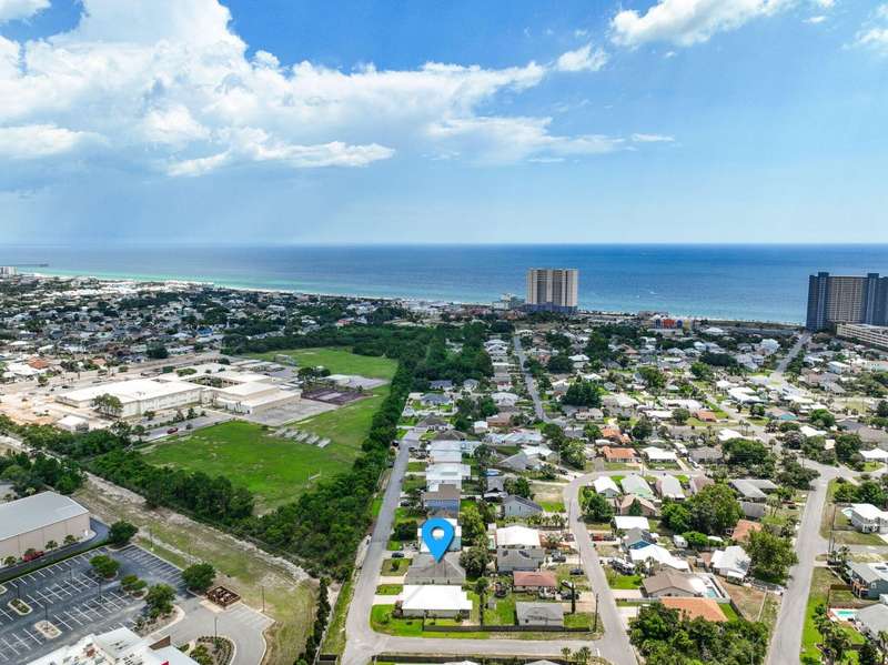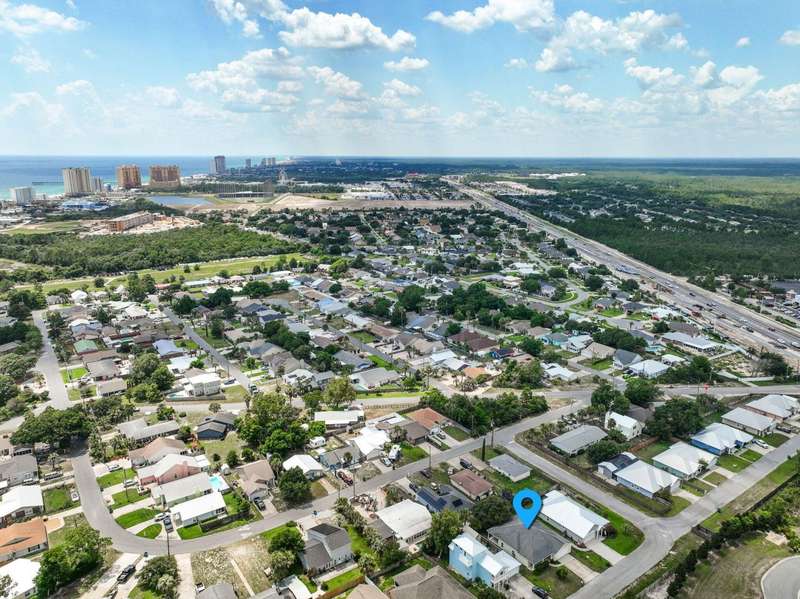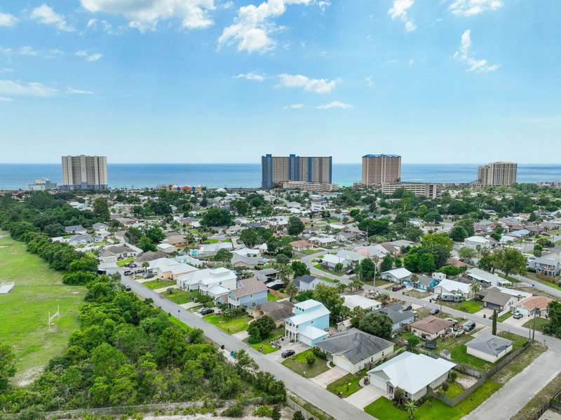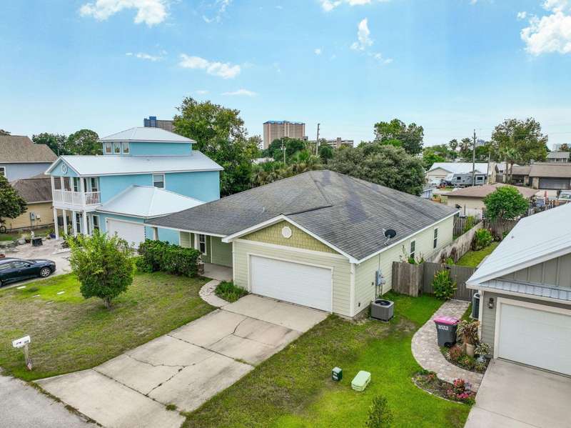 Charming Beach Cottage south of 98 at a great price! This home is a short walk to the beautiful white sand and emerald water in a quiet no short term rental community with no HOA fees, making this a perfect primary residence or second home. Very close and convenient to the many shops and restaurants in Pier Park, favorite restaurants on Front Beach Rd like Runaway Island and Local Steamer, and to other local attractions like Top Golf. Great room is open concept for entertaining and relaxing. Kitchen has stainless appliances, granite counters, and nice cabinetry with plenty of storage. The Primary has an en suite bath and a walk in closet. Outside you have a fenced backyard and a covered patio perfect for kids or pets and the opportunity to make it an outdoor oasis. See it today!