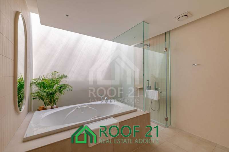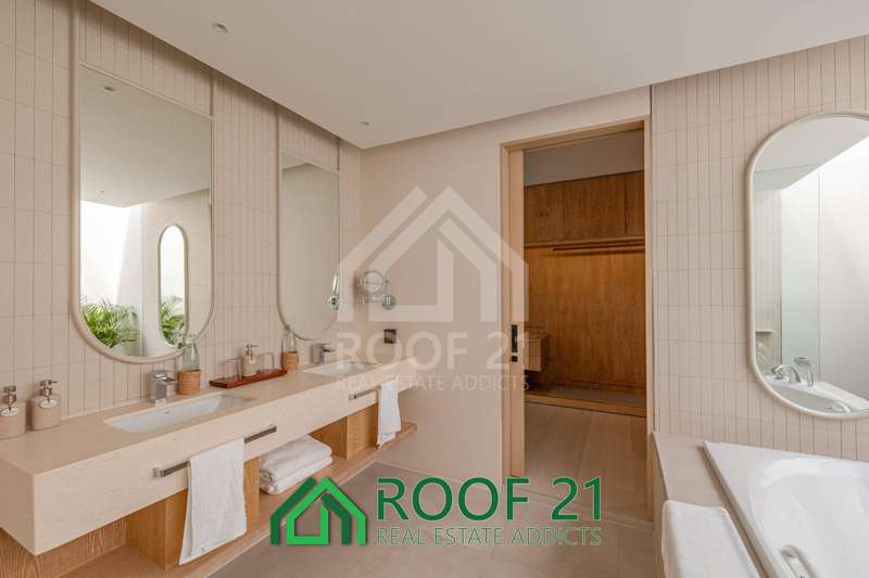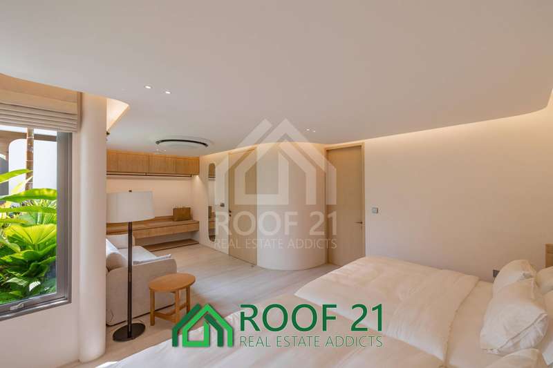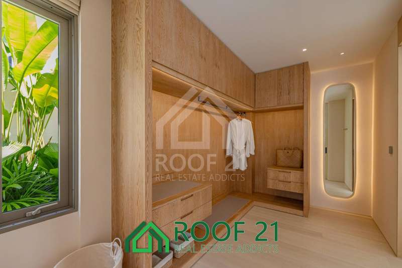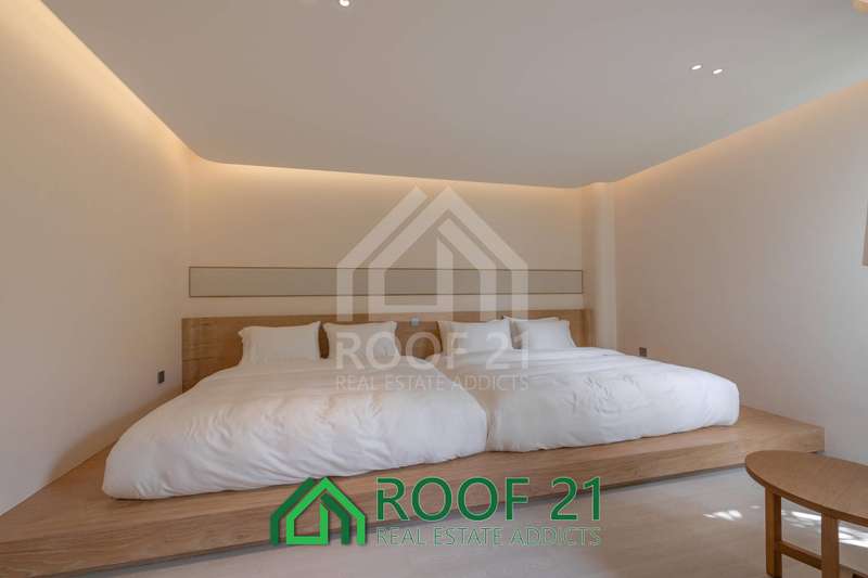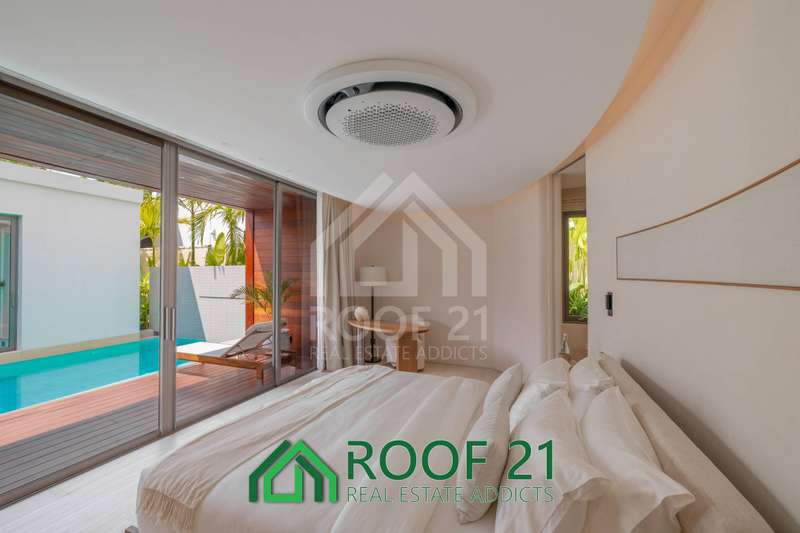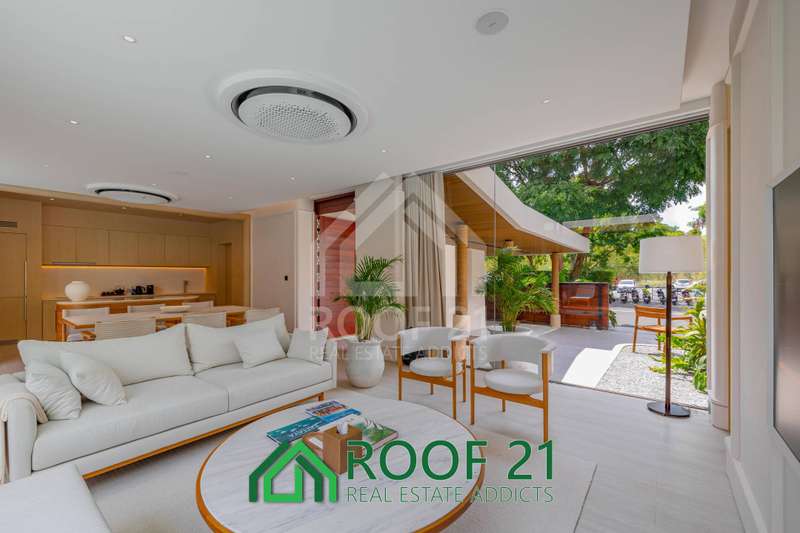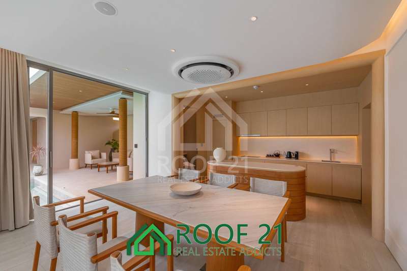 Thoughtfully designed with custom-made furniture and a seamless open-plan layout, the villa connects the kitchen, living area, and bedrooms directly to the private saltwater pool. Floor-to-ceiling glass panels flood the interiors with natural light, creating a bright, airy, and relaxing ambiance.