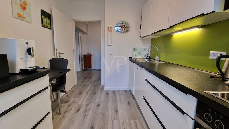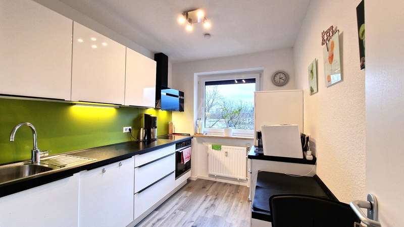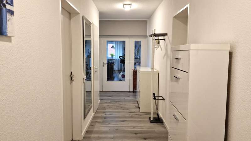 With this real estate offer, Von Poll Immobilien Hannover Region Süd presents a recently renovated 3-room apartment with a spacious loggia. The apartment is located on the 2nd floor of a well-kept apartment building built in 1979 and has a living space of approx. 104 m². The apartment was extensively modernized in 2020 and is in excellent condition. All you need to do is move in. Your new home awaits you with a spacious living room that is always flooded with light thanks to the wide window front with balcony door and another window, two well-designed bedrooms, a modern shower room and a high-quality fitted kitchen that invites you to prepare culinary delights. The spacious south-west-facing loggia is a particular highlight. Spend relaxing hours outdoors and enjoy the feeling of being on vacation. The apartment impresses with its modern living ambience, which is underlined by the attractive floor coverings, among other things. The vinyl parquet flooring, which is as good as new and impresses with its durability, is laid in all rooms and harmonizes in colour with the white interior doors, some of which have glass inserts. The tiles in the newly fitted bathroom and the kitchen with its white fronts and black worktop fit perfectly into the uniform and transparent furnishing style. In addition to the appealing living atmosphere, the apartment also spoils you with the corresponding comfort. The windows in the apartment are made of plastic, are double-glazed and have roller shutters, some of which can be operated electrically. An intercom system increases security and contributes to convenient communication. Another advantage is the underground parking space belonging to the apartment as well as an outdoor parking space. This guarantees easy parking for your vehicles. The property also offers a private cellar room for additional storage space. A bicycle cellar and a drying room are available to residents for communal use. Overall, this property impresses with its well thought-out room layout and high-quality fittings. It offers you both comfort and functionality in a well-kept residential complex with a pleasant neighborhood. The central, yet quiet location allows quick access to shopping facilities, public transport and leisure facilities. If you are interested in further details or would like to arrange a viewing appointment, please do not hesitate to contact us. Take the opportunity to see the benefits of this apartment for yourself.