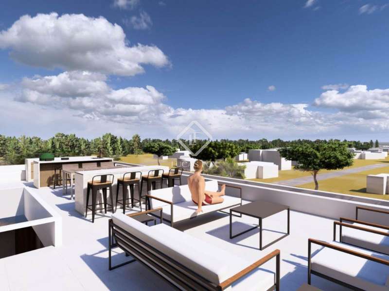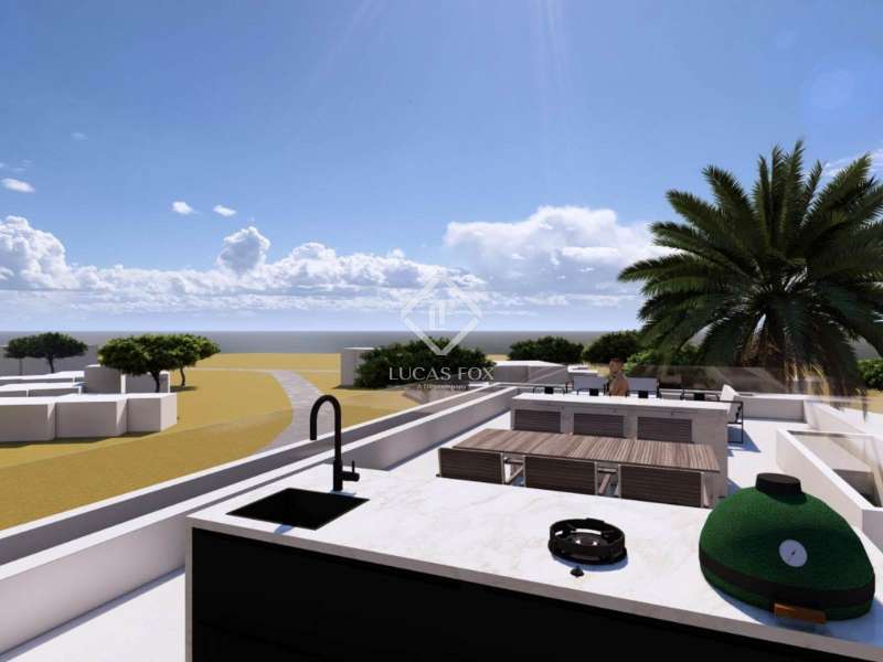Lucas Fox presents this new build project to build a 250 m² villa on a 650 m² plot in the Cap d'Artrutx development , in the municipality of Ciutadella de Menorca. The property is spread over three floors plus a terrace/solarium. The ground floor welcomes us through a small entrance hall, while to the left we find a bathroom and a double bedroom . From the entrance hall we enter the spacious living room, separated by a modern wood-burning fireplace that connects to the dining room and the fully equipped open-plan kitchen, both rooms with large panoramic windows that flood the entire space with natural light. From here, we step out onto the large porch with a barbecue area, summer dining room , and pool area, ideal for relaxing outdoors. In the living room, a modern and comfortable cantilevered wooden staircase leads us to the first floor where we find the main bedroom with a private bathroom and access to an exterior jacuzzi, and two other double bedrooms, both with private bathroom. All bedrooms have built-in wardrobes. On the upper floor we have a terrace/solarium with a barbecue area and fantastic sea views. In the floor there is a garage with capacity for two cars. The construction project will include high-quality materials, panoramic double-glazed exterior carpentry, ducted air conditioning and heating. The estimated construction price will be €2,500/m². Currently, what is for sale is the plot with a small 70 m² villa on the second line of the sea. Without a doubt, a unique opportunity to build a modern villa with excellent finishes in an unbeatable location. Contact us for more information or to arrange a visit.