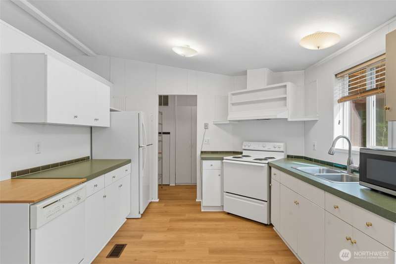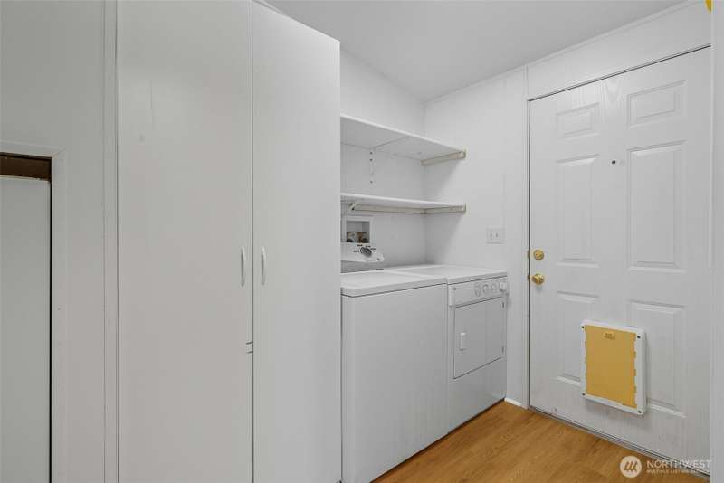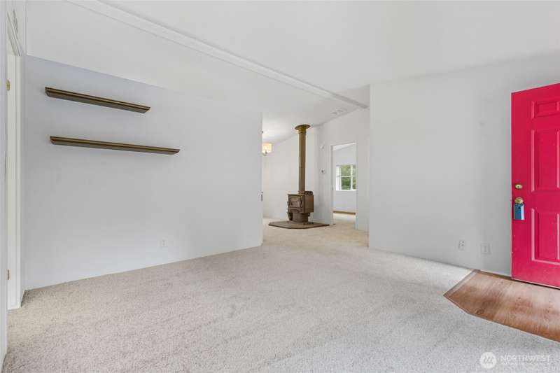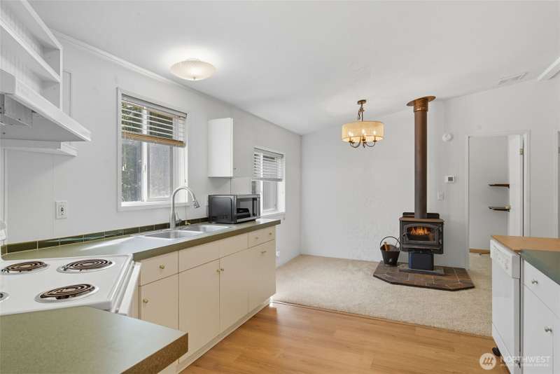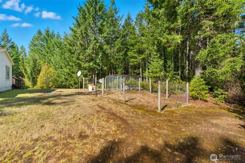 Escape the ordinary! Tucked away on 5.43 private acres, this 3BD/2BA - 1,000 sq. ft. home is enclosed with tall trees, deer at dawn, and eagles overhead. Inside: new LVP & carpet, some new contemporary light fixtures. Heat pump and a free-standing wood stove for cozy nights. Outside: fruit trees, firepit for evening gatherings, fenced dog run, sunny front deck, and covered back deck. Spacious detached 2-car garage with shop plus portable carport provide ample parking, not to mention the endless driveway parking at entry. Stacked wood storage in backyard is all yours! Tie-downs, and title elimination make financing simple. Clean and fresh, ready for some new life! Peaceful, secluded, and move-in ready—your perfect PNW retreat!