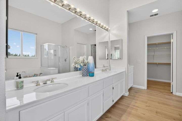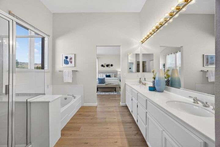 Welcome to this beautifully maintained 4-bedroom, 2.5-bath home nestled in San Joses highly sought-after Evergreen neighborhood. This residence offers the ideal blend of comfort, functionality, and future potential. Inside, you'll find a bright and open living room, a separate family room, and a well-appointed kitchen featuring a brand new stainless steel gas range and dishwasher , all flowing seamlessly to a low-maintenance backyard with multiple fruit trees, perfect for relaxing or entertaining. New laminate flooring throughout the home ensures easy upkeep and a modern touch. Upstairs, the spacious primary suite impresses with a walk-in closet, double vanities, a stall shower, and a soaking tub for a spa-like retreat. Three additional bedrooms share an updated full bathroom, while a dedicated laundry room with added storage enhances everyday convenience. With its charming curb appeal, mature landscaping, and thoughtfully designed layout, this home is perfect for families, professionals working from home, or anyone seeking comfort close to top-rated schools, parks, shopping, and dining. Welcome home to a warm, family-friendly community with Top Schools Norwood Elementary (Test scores 9/10) and Quimby Middle (Test scores 10/10).
