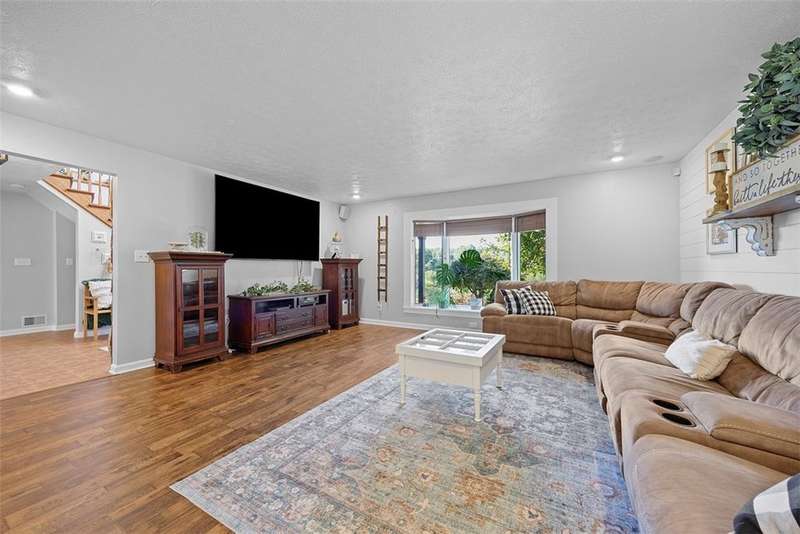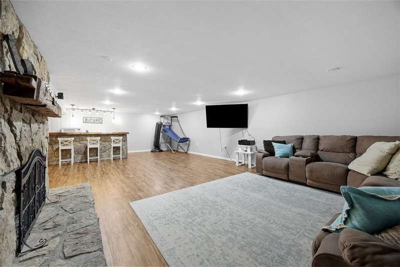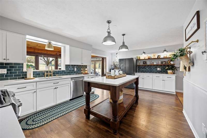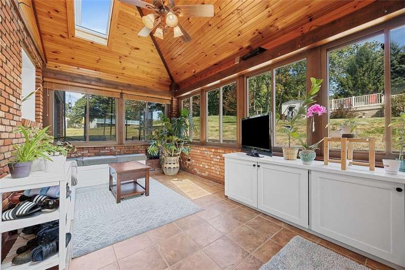 This stunning 4,000 sq. ft. home sits on a bucolic one-acre lot. It features large, sunlit rooms and a spacious kitchen with a big island and extra-large pantry. Off the rear, a beautiful sunroom like a solarium offers a tranquil indoor garden, leading to a covered patio for outdoor relaxing. The backyard includes a sparkling swimming pool, a gorgeous firepit, and plenty of space for outdoor fun. The first floor has a luxurious master suite and two additional rooms that can be bedrooms or flex spaces. Upstairs, there are three more bedrooms and a lower level with a game room, wet bar, exercise room, and laundry. This private, sun-filled retreat combines elegance and comfort, perfect for everyday living and entertaining in a serene setting.