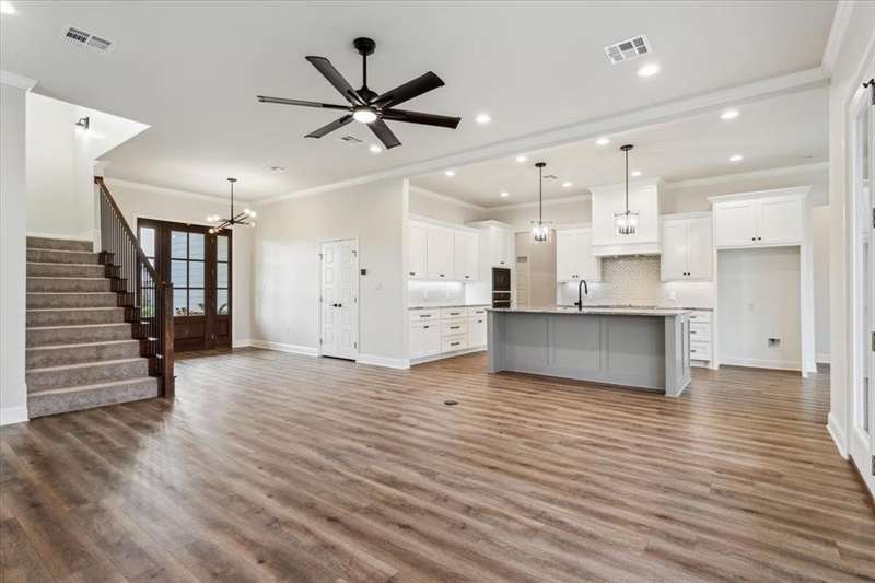 Welcome to this stunning 4-bedroom, 3.5-bathroom home in Callan Village, one of the area’s most exciting new master-planned communities. Thoughtfully designed with exceptional quality and style, this residence offers a spacious, functional layout perfect for both everyday living and entertaining. The main level features an isolated primary suite with vaulted ceilings and a luxurious bath and closet retreat. Luxury vinyl plank flooring flows throughout the home, and a convenient half bath is located near the garage entrance along with a custom mud bench for daily ease. Upstairs, you’ll find three additional bedrooms, two full bathrooms, a built-in desk nook on the landing, and a versatile bonus room—ideal as a playroom, media space, or second living area. The heart of the home is the beautifully appointed kitchen, featuring a large center island, matte black Café appliances, and ample cabinetry. Step outside to enjoy the oversized backyard and covered patio, perfect for outdoor gatherings. Callan Village offers a prime location just minutes from Woodway retail, dining, and entertainment, with access to the highly sought-after Lorena ISD.