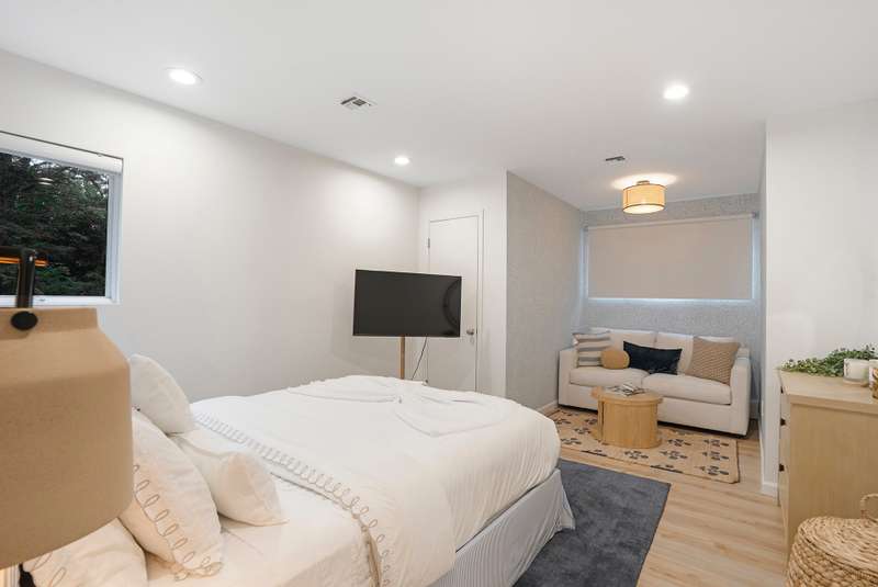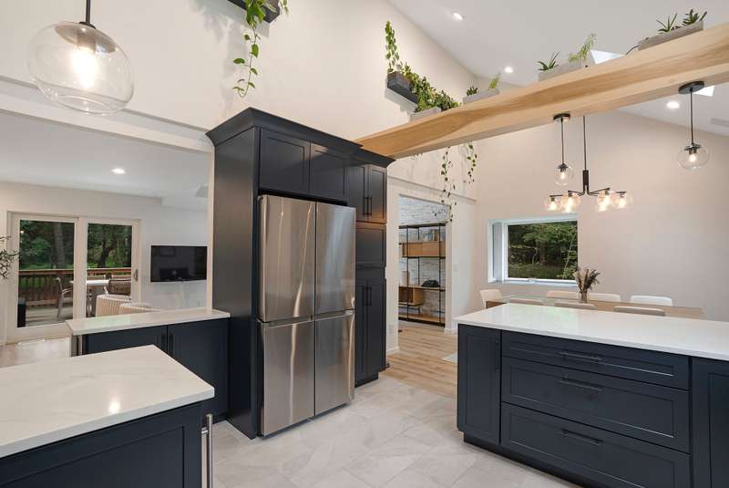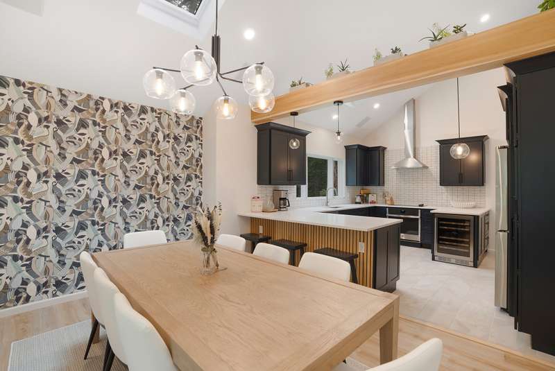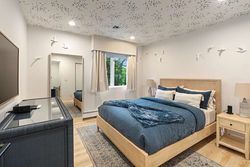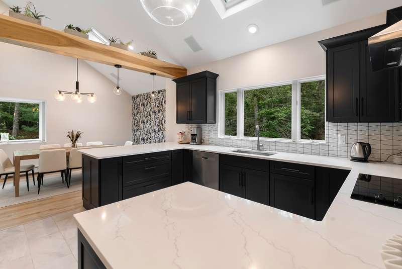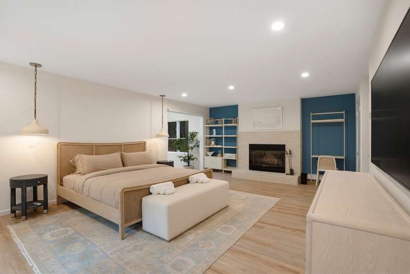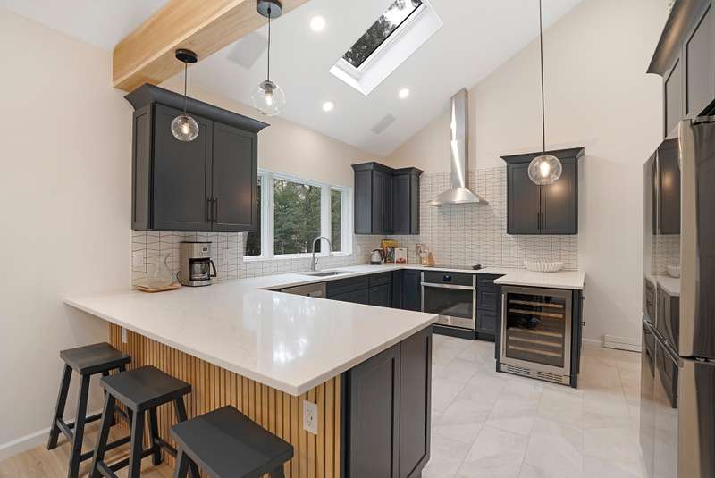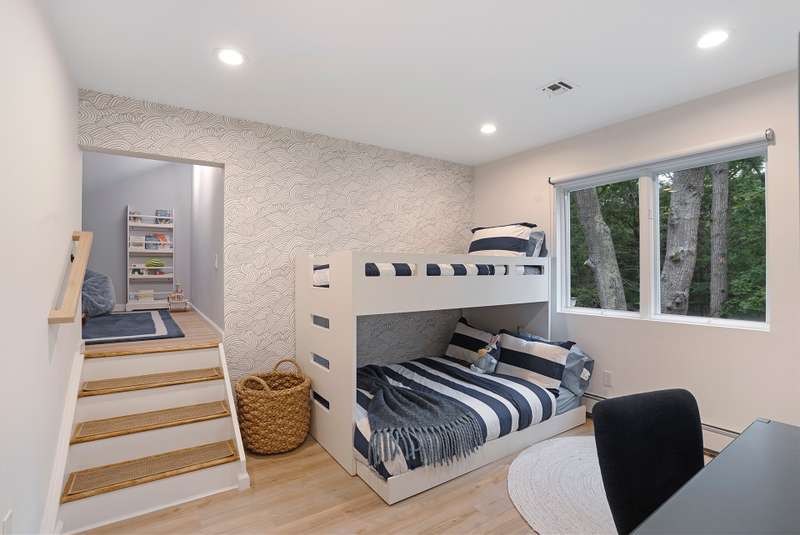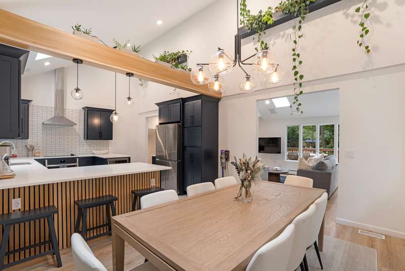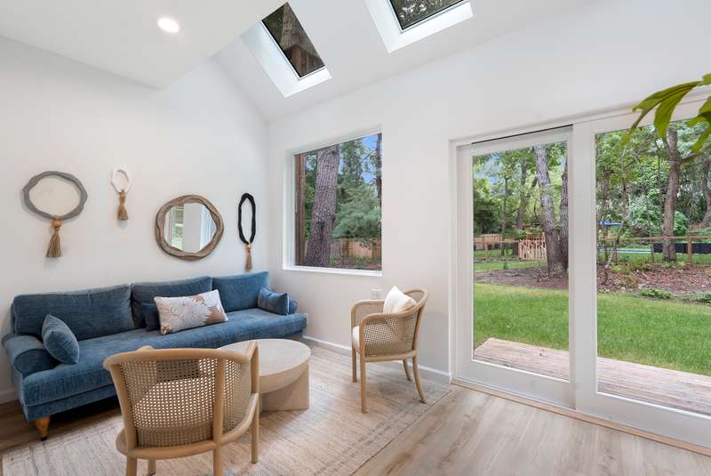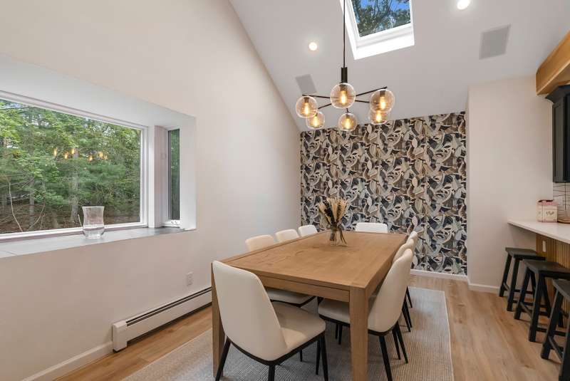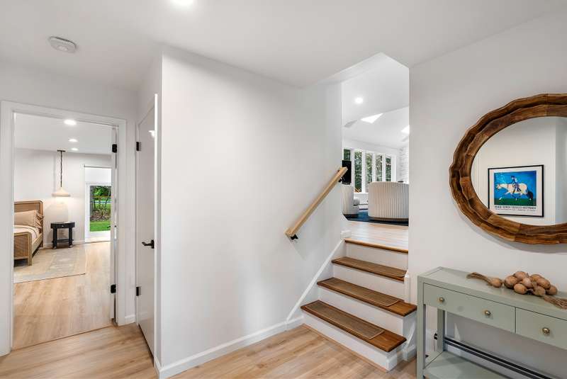 RR# RP250704 Secluded yet close to the Village, this split-level contemporary features four bedrooms and four baths. Living room with fireplace, sunroom, dining room, kitchen, extensive decking. The 20' x 40' pool is set amid the very private, wooded 2.8-acre property. .