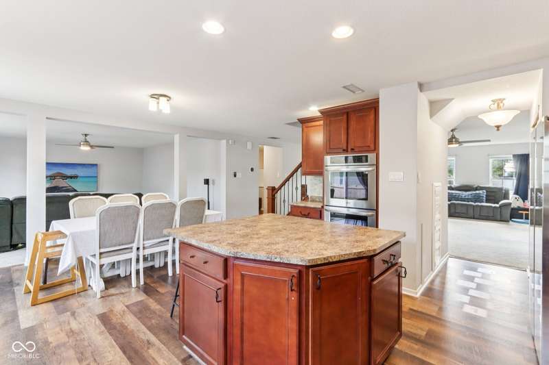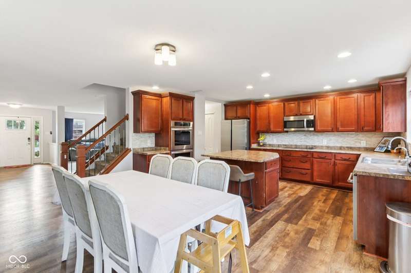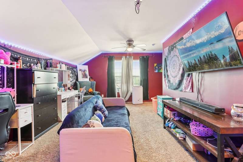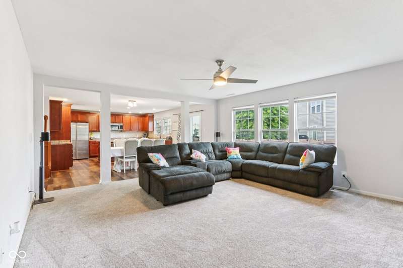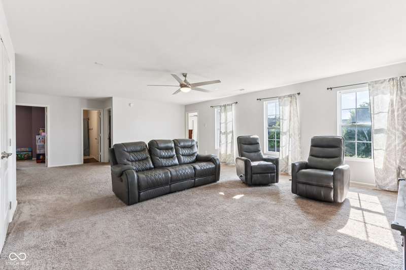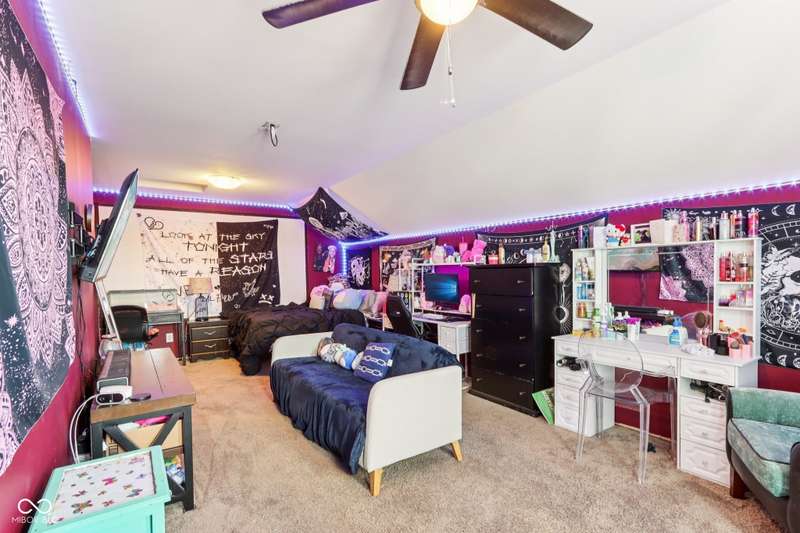 You won't find many homes with more space than this stunning 2.5-story home, perfectly designed for large families! With 4 bedrooms plus a versatile bonus room, multiple living areas, and thoughtful updates throughout, this home offers the room and flexibility growing families need. Host family and friends with ease in the spacious living room and family room on the main floor, separated by a gorgeous kitchen featuring stainless steel appliances, a built-in double wall oven, and electric cooktop. This is an entertainer's dream! The main floor also includes an updated half bath and a den/office conveniently located off the garage entrance-ideal for remote work or family game nights. Head upstairs to a massive, inviting loft that connects all four bedrooms-perfect for quality family time, play areas, or a second living space. The primary suite is your personal oasis, featuring updated countertops, fresh flooring, an indulgent garden tub, and a separate shower. The conveniently located upstairs laundry room houses the furnace, updated AC (2024), water heater, and softener (2022). Don't miss the extra half-story bonus room measuring 24x12-previously a theater room, now your 5th bedroom, craft room, playroom, or whatever your family needs! The attached garage is equipped as a personal home gym with finished, insulated space, epoxy flooring, and its own heater. Plus, there's an EV car charger ready for your electric vehicle. This home shines with recent updates: all carpeting is 3 years old, brand new flooring on the main level, fresh paint throughout, and a roof replaced in 2019. The fenced-in backyard features a brand new patio and fresh sod-perfect for kids and pets to play safely. Enjoy the best of Hamilton County with award-winning Noblesville Schools! You're just 2 minutes from Hwy 37 and Greenfield, 3 minutes from Costco, and 5 minutes from Ruoff Music Center and Hamilton Town Center. Location, location, location! Ready to make this your family's unique paradise