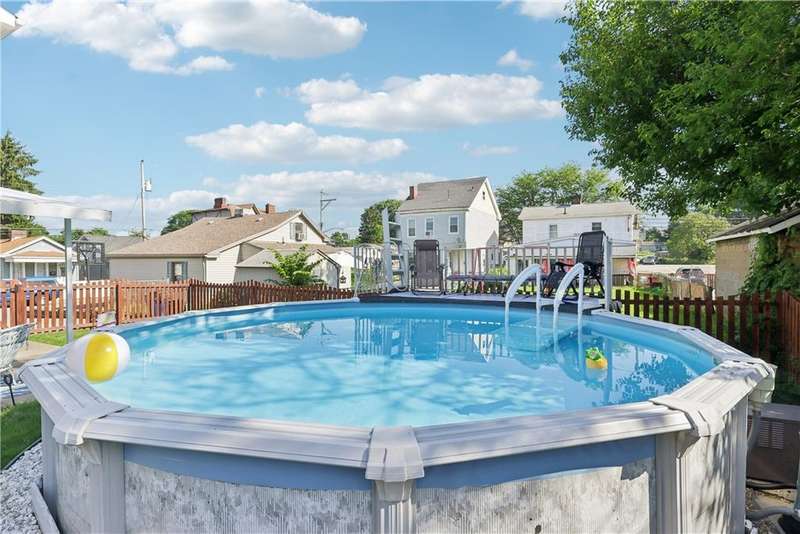 Escape the crowds in your immaculate Pittsburgh Oasis! Discover this pristine 3 bed room, 3 full bath, 2 story home, perfectly situated on a level fenced double lot. Designed for modern living, this residence offers both privacy & convenience. Step inside to an inviting open floor plan, where newer hardwood floors flow seamlessly from the eat-in fully equipped kitchen(featuring a discrete first floor laundry area)into the spacious great room. Here, a cozy gas fireplace, elegant tray ceiling & crisp recessed lighting create a warm & welcoming ambiance. Atrium doors lead directly to a private covered patio & a refreshing above-ground pool-your ideal retreat for enjoying those hot summer days & evenings. Upstairs, the luxurious primary en suite awaits, complete with a relaxing jacuzzi bath & generous closet space. Two additional spacious bed rooms share a well-appointed full hall bath, that offer versatile options, easily transforming into a private den or home office to suit your needs.