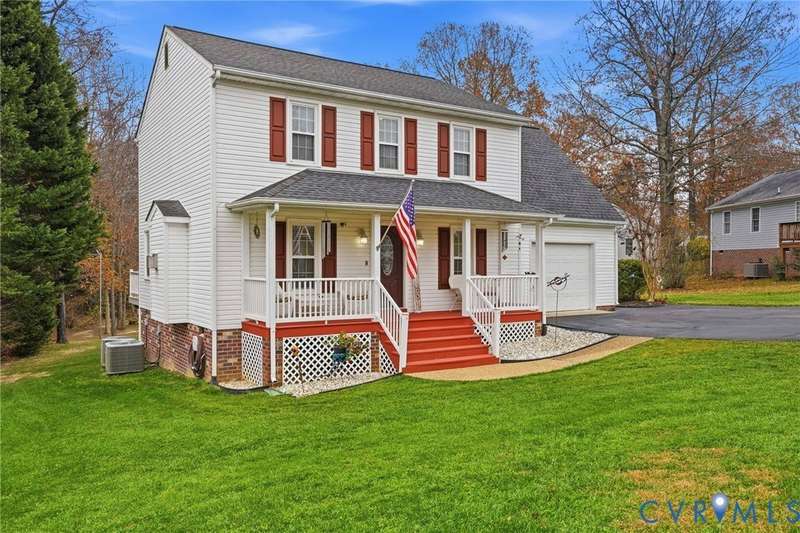Welcome to 8324 Tarragon Dr nestled in the peaceful Community of Spicetree in the Hanover High School District! This well-maintained Colonial offers a perfect blend of comfort with 2160 square feet, 4 bedrooms and 2.5 baths. Upon entry you will be greeted by an open floor plan with the family room with wood floors and gas fireplace plus the dining room with wood floors. The kitchen features tile flooring, Granite countertops, new cabinets, island, pendant lights, pantry, ceiling fan and breakfast nook. Off the kitchen is a spacious bonus room that's perfect for a media room or man cave with LVP flooring, two ceiling fans, utility closet and an exterior entrance. Retreat to the second level to find the owner's suite with updated carpet, a walk-in closet, ceiling fan plus an en-suite bath with tile flooring, single vanity and shower stall. You will also find three additional bedrooms and a hall bath with tile flooring, single vanity and a tub/shower combo. The spacious backyard is perfect for entertaining, featuring a composite deck with vinyl handrails and a covered brick paver patio to host gatherings or simply enjoy the outdoors. Other notable features include maintenance free vinyl siding & widows, dual zone heating/cooling, covered front porch, double width paved driveway, detached one car garage shed and pull-down attic. Convenient to shopping, dining and interstates. This One Will Not Disappoint You! Call For Your Showing Today!!