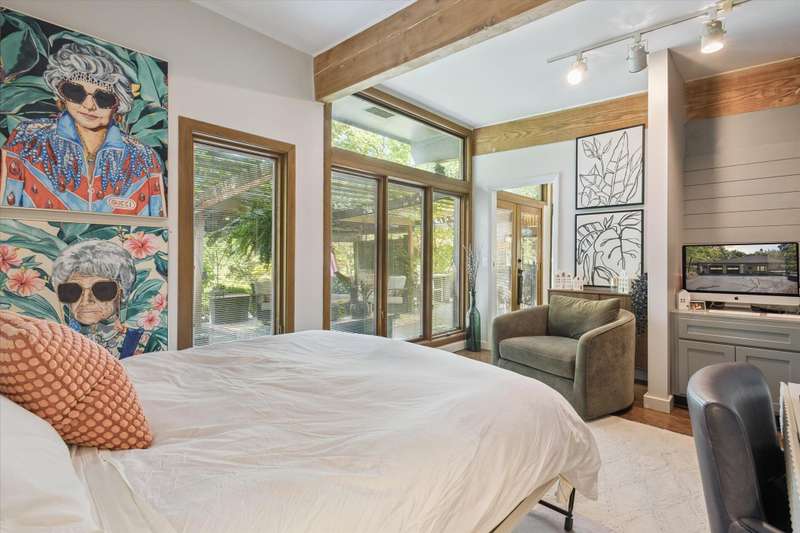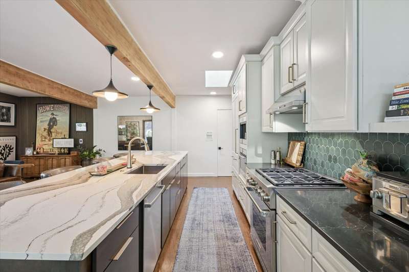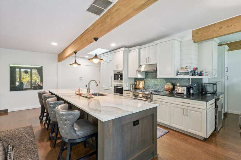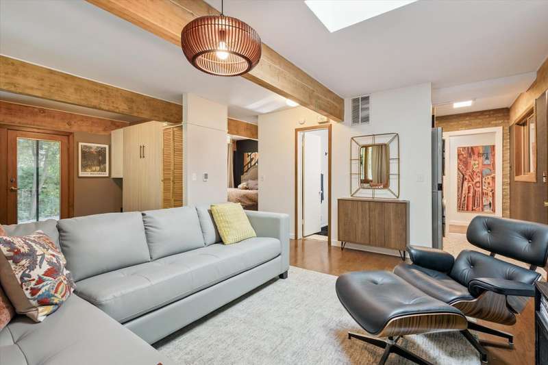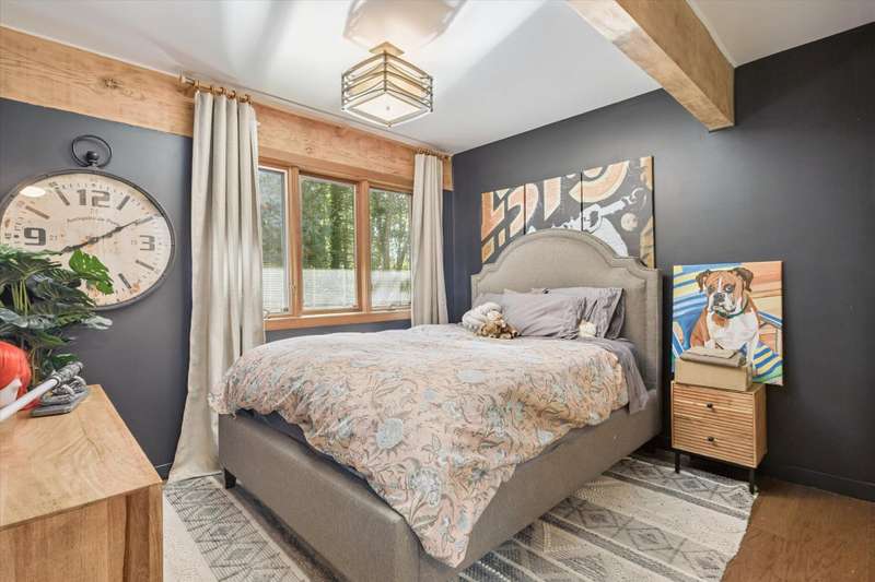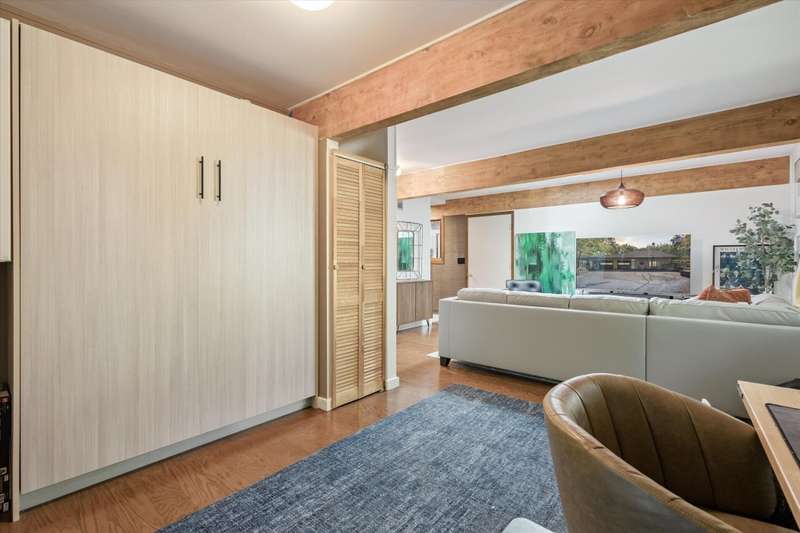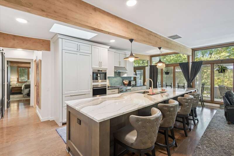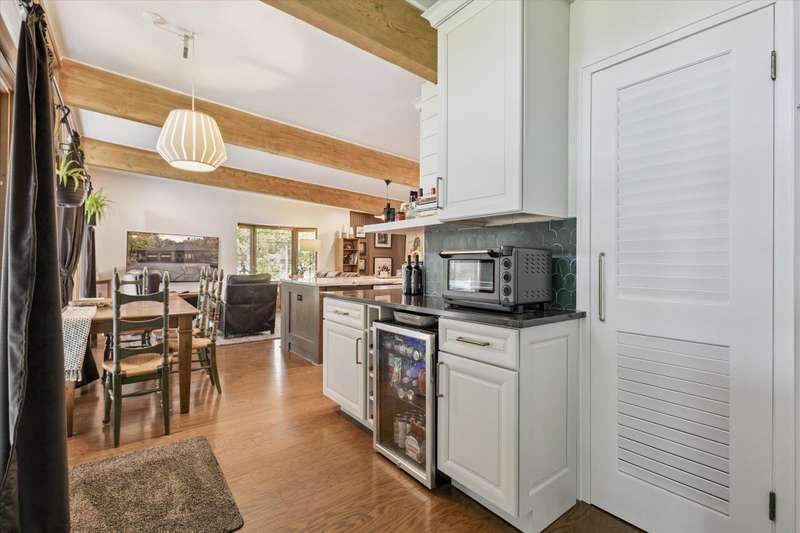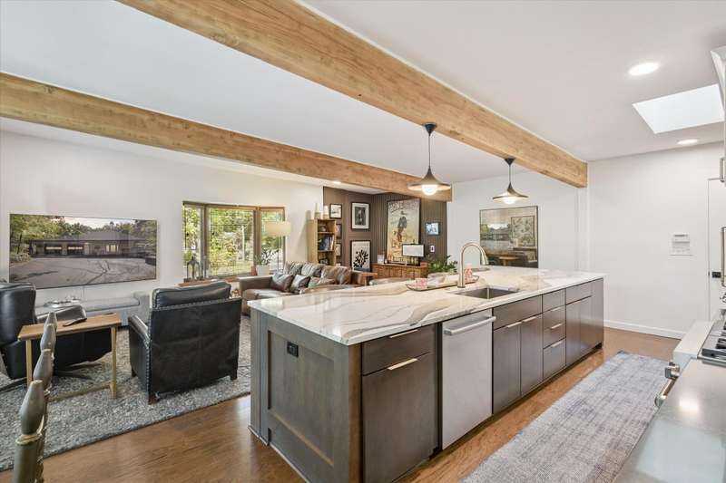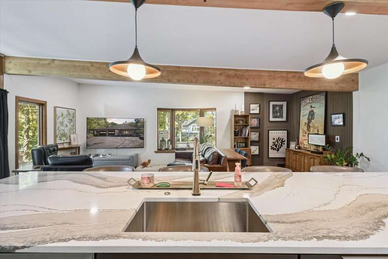 This updated 1957 Mid-Century Ranch has been well-maintained with close attention to details. The home features heated floors under engineered natural wood planks throughout, brand-new kitchen with built-in Subzero refrigerator and freezer, commercial grade Wolf range, quartz countertops, and marble backsplash. Brand-new laundry area with new washer and dryer. The exterior was completely repainted in 2024. Three beds, two full baths, large living room and family room. Major upgrades include on-demand tankless water heater, newer roof and skylights, blown-in insulation and double insulated Pella windows, whole house generator. Floor to ceiling windows overlook the John Bonnell Park with water access. Located on a beautifully landscaped over-sized corner lot with gardens, patio, deck, arbors, firepit and fishpond. Privately nestled in woods. Enclosed two car garage with significant storage space located in the attic above. Access to Woodcliff Park Assoc. on Reeds Lak The home faces the Reeds Lake Channel and has unobstructed views of the Lake.