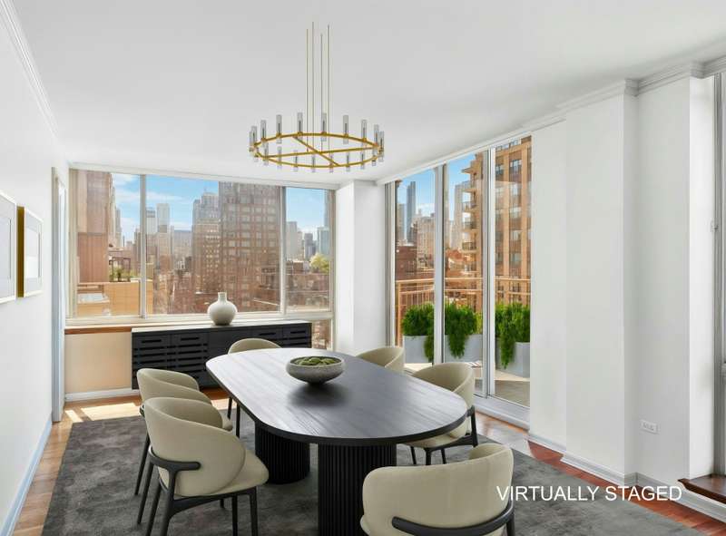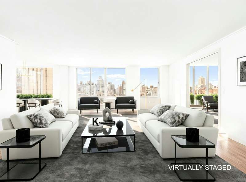 The 19th floor at 201 East 80th Street is an expansive residence of approximately 3,500 (interior) square feet, featuring five bedrooms, five bathrooms, remarkable storage, high ceilings, beautiful wood floors, and walls of windows throughout, as well as a stunning layout comparable to that of a private home.