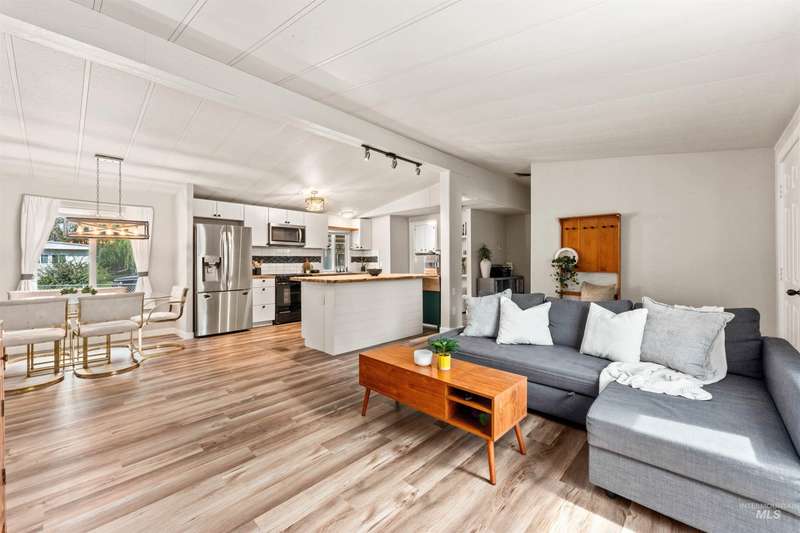 $7,200 seller credit included! Apply it toward monthly costs so your effective payment is as low as $1,016 the first year, $1,216 the second, then full rent the third—or use it toward rent, utilities, or additional costs. This fully renovated, turn-key home is located in one of Eagle’s most desirable manufactured communities, offering privacy, walking paths, and a nature-filled lifestyle near parks and shopping without the busy city feel. Unlike many communities on crowded roads, this neighborhood is actively improving and offers peace of mind with optional yard maintenance or the freedom to do it yourself. Inside you’ll find a split floor plan with a private owner’s suite, two bedrooms, an office, and an open kitchen with butcher block island. Outside features a fenced yard, covered patio, and shed. RV/boat storage available. Please note: sale is for the home only, lot rent is $1,416 including water, sewer, trash, and fees.