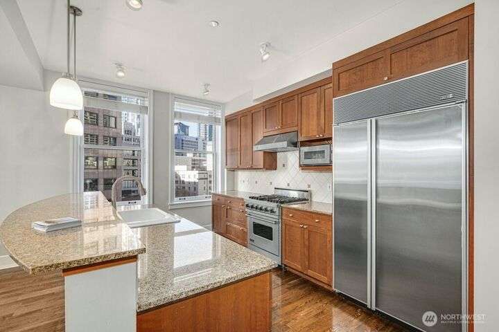 Gracious open floor-plan boasts 1800+ sqft of distinctive living/entertaining space, marked by gorgeous hardwoods + an abundance of natural light. Windows and city views at every turn. STEPS to everything downtown! Minutes to Pike Place Market, the newly completed 'Waterfront Park', 5th Ave Theatre or Benaroya Hall. Includes water/sewer/garbage + gas. Live in the heart of the City!