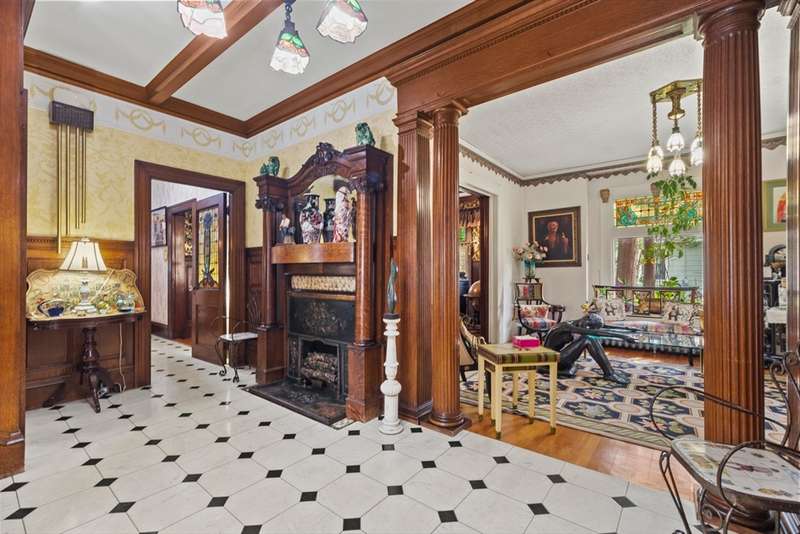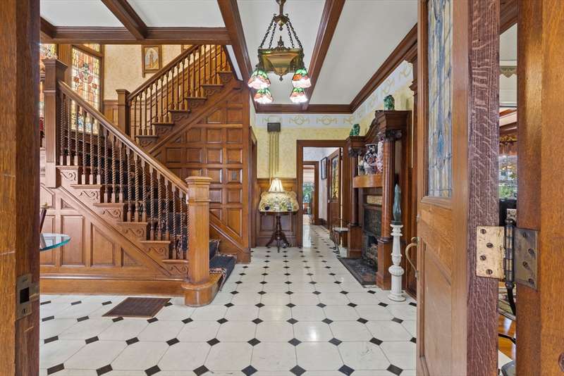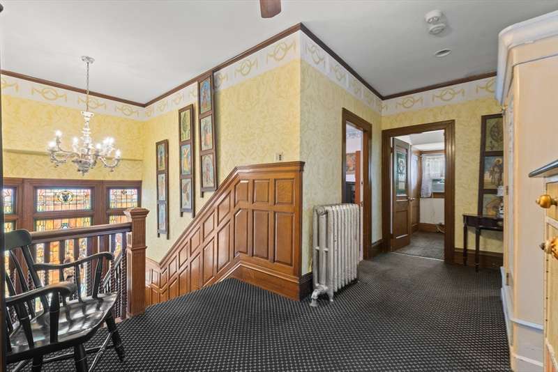 Preserved Colonial boasts balance between its preserved historic character and modern functionality. Its timeless elegance best describes this blend of architecture and modern amenities. A grandiose foyer lit by original fixtures introduces the elegance capturing an era gone by. Throughout this home are various stained opulent glass paneled doors and accented windows. The ornate craftmanship continues with each molding, sculptured posts, fine cabinetry, stairway and widow seats. The kitchen has a warm brightness to greet each morning. Its commercial stove and double ovens will empower any chef. The grand dining room depicts room for elaborate meals as guests retire to the adjourning parlor. A grandiose stairway escort you to the second level luminated by a prismatic display of stained glass. Bedrooms and the primary suit are located here as well as the bath. A beautifully designed guest suite w/shower offer many possibilities on level 3. Central Air 2025 Explore the ADU possibilities.