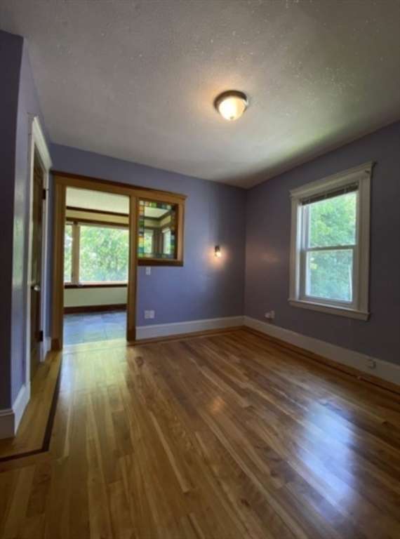 Owners unit, tastefully renovated, Sunny second floor, three bedroom home, Thoughtful detail thru out includes, Young Brazilian granite, shaker maple cabinetry, SS appliances, Gas fireplaced living room, Upscale tiled full bath, Gas fireplaces 4 season sunroom with windows galore/beautiful slate floor, glass doors, stain glass window, hardwood floors, Laundry in basement for unit, Storage, Two parking spaces, Tree lined backyard space, 10 minutes to Longwood Medical, moments walk to commuter rail/bus, Restaurants/Arboretum and all major routes.