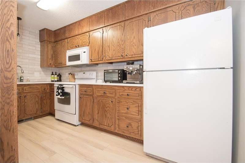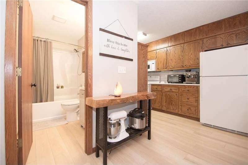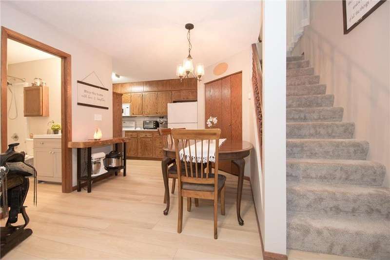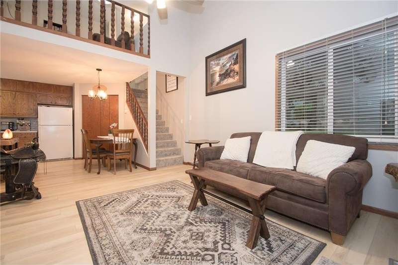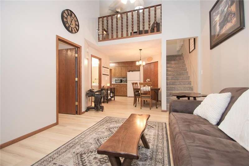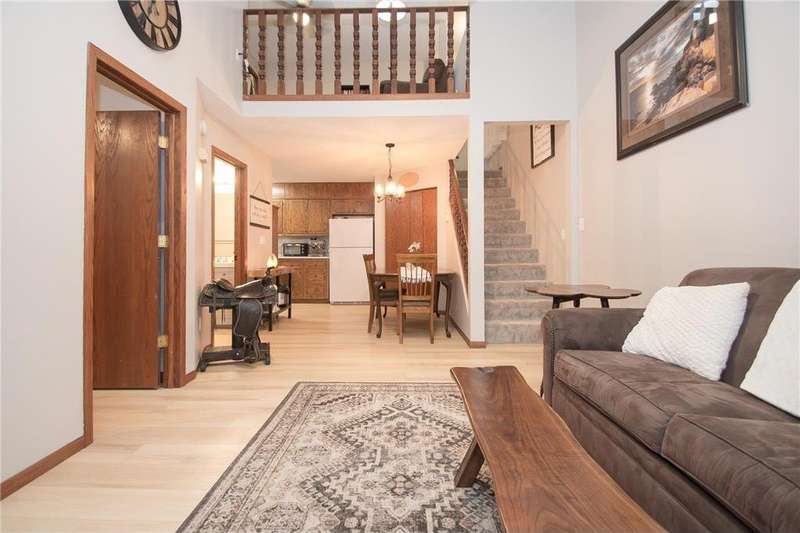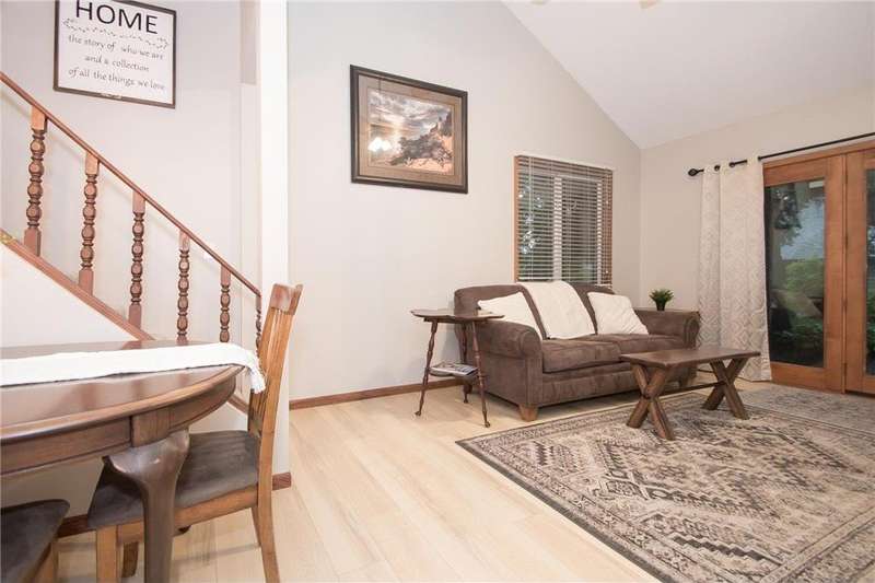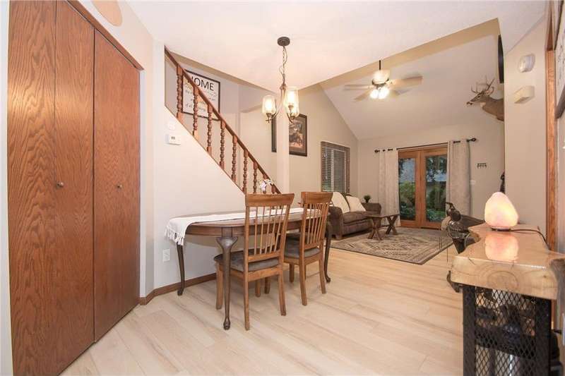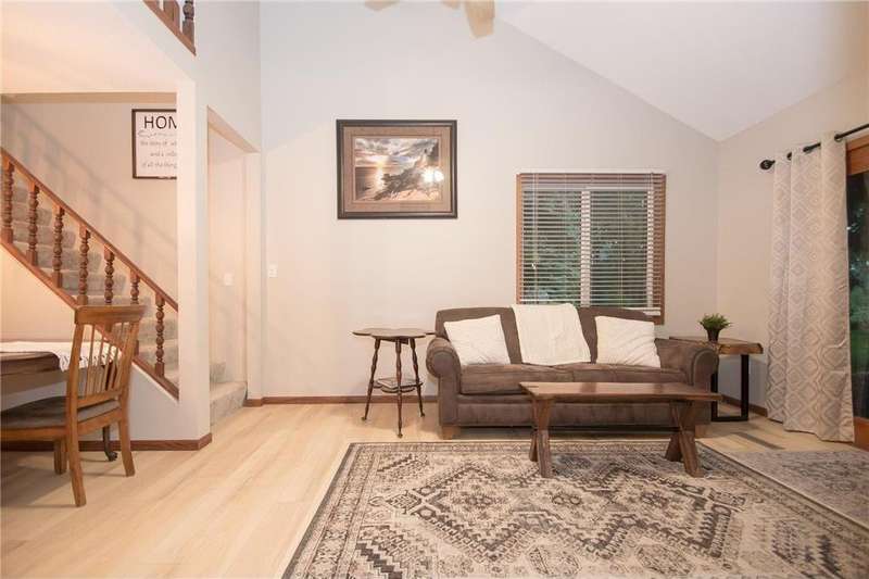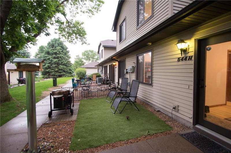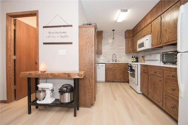 Welcome to this beautifully updated two-bedroom, two-bath end-unit townhome in a prime Elk River location offering privacy and convenience! The main level offers all the essentials: a spacious bedroom, full bathroom, bright living room with soaring ceilings, kitchen, and a conveniently located laundry/mechanical room with a stackable Maytag® washer and dryer. The kitchen is both stylish and functional with plenty of cabinetry, an updated Bosch dishwasher, and updated Maytag® microwave and stove. You'll find a versatile loft space on the upper level, as well as a second full bathroom and a large bedroom with a walk-in closet. Thoughtfully designed layout with natural light throughout! Updates completed between 2019 and 2023 include LVP flooring throughout the main level, tile backsplash and appliances in the kitchen, solid surface countertops, upgraded sink and lighting, new upper-level carpet, new front door lock, four new vinyl windows, fresh paint throughout including retextured and repainted ceilings, updated furnace, air conditioner, water heater, outside spigot, and completely remodeled bathrooms. Additional recent updates include a new roof (2023), whole-house water filtration system (2023), artificial turf added to the front yard for low-maintenance curb appeal (2024), and new ceiling fans installed (2024). A one-stall detached garage in a set of garages offers covered parking or additional storage. Move-in-ready, located within walking distance to a park with a playground and basketball court, and perfectly situated close to retail, entertainment, parks, schools, and more—makes it an ideal choice for comfortable everyday living with convenience. One-year home warranty included!