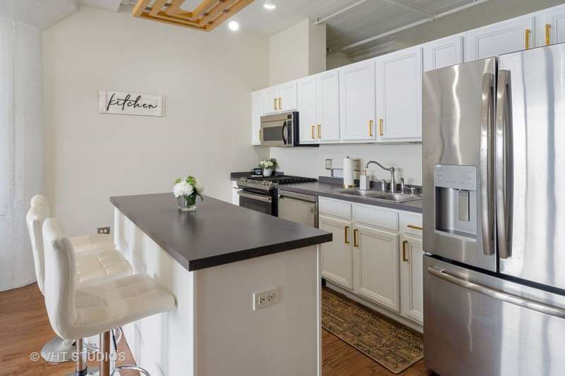 Welcome to this beautiful 2 bed,1 bath (unique Jack & Jill configuration) condo located in the sought-after University Village Lofts. The open-concept layout boasts stunning hardwood floors that flow seamlessly through the large living room (which features a cozy fireplace) and into the adjoining dining area. The recently updated kitchen is a chef's dream, equipped with stainless steel appliances and abundant cabinet space. Step through the sliding glass doors from the living room onto your spacious balcony - the perfect spot to unwind on warm summer evenings or crisp fall afternoons. The generously sized primary bedroom offers a south view of the city and includes a large walk-in closet leading to a thoughtfully designed primary bathroom. The second bedroom is equally spacious with ample wall-to-wall closet space. This unit also features the added convenience of an in-unit washer and dryer. Ideally located in the heart of a vibrant urban community, you're just minutes from the West Loop, South Loop and Pilsen neighborhoods as well as the medical district (Rush & Mount Sinai Hospitals, UIC Medical Campus). Easy access to public transportation and major expressways (90/94, 290 & 55). This elevator-equipped building also offers a host of amenities, including an indoor heated garage, a storage locker, a fully equipped gym, security staff at the lobby door and package delivery services. Whether you're looking for a great investment, a city retreat, or a primary residence, this unit is a must-see. Come check it out today! Seller will consider all Reasonable offers!