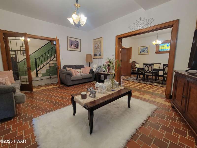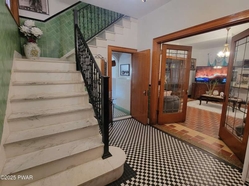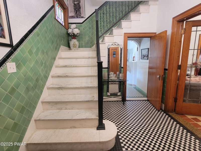 Timeless Elegance: Magnificent Brick Estate Awaits Its New OwnersThis architectural masterpiece, with frontage on the Lackawanna River, featuring impeccable all-brick construction, combines Old-World craftsmanship with timeless elegance. Step through the front entrance into a home that showcases exquisite tile work and stained glass features providing character and filtered light.Majestic 4-bedroom floor plan perfect for family living and entertaining. Grand marble staircase creates a stunning focal point. Beautiful hardwood flooring throughout second level. Sun-drenched Florida room with remarkable decorative tile work.This rare treasure offers the perfect blend of historic charm and modern livability that today's discerning buyers seek.Don't miss the opportunity to call this exceptional residence your home.