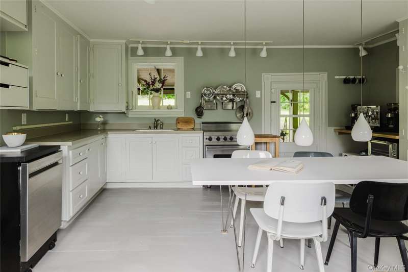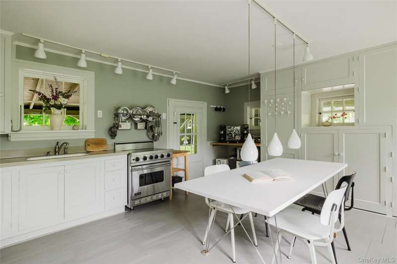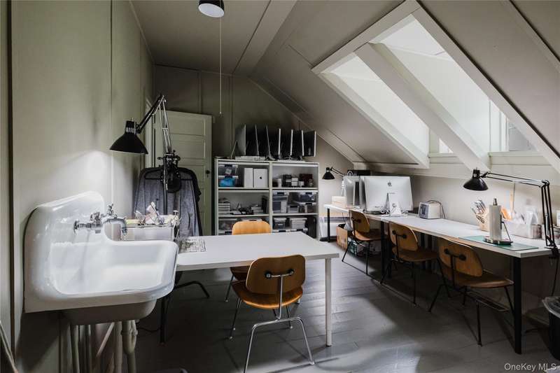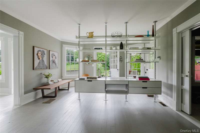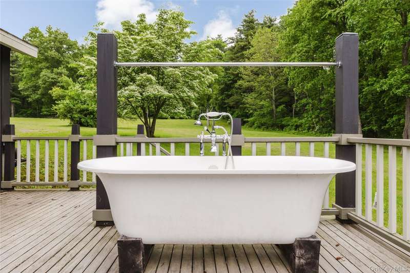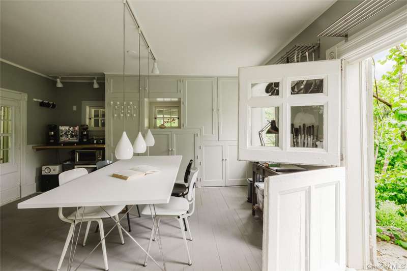 Welcome to Mac Brown Waterhouse, a storied 119-acre estate set within a hidden valley offering complete seclusion and timeless beauty. The original 1830s farmhouse is tucked away at the end of a private lane in Claverack, NY, where the road terminates in a round gravel driveway anchored by the propertys original stone well. Two large ponds grace the land, one directly in front of the house that is aerated and swimmable. Sited among meadows and mature woodlands, the main house, upgraded barn, and charming studio shed are framed by terraced stonework, a network of trails, and thoughtfully designed gardens. The setting is peaceful, restorative, and deeply connected to the land, yet only a short drive to both Hudson and Great Barrington. The antique farmhouse offers four bedrooms and two bathrooms across 2,825 square feet, where original details like moldings, wood floors, and Dutch doors preserve its old-world charm. A generous double living room and an office nook outfitted with Vitsoe modular shelving, lead to a bright dining area, kitchen, and direct access to the patios and gardens. The layout encourages an easy indoor-outdoor rhythm, with covered porches, and multiple terraces for lounging, cooking, or gathering. Two staircases rise to the upper-level bedrooms, where the southern exposure fills each room with light, and the attic has been insulated to improve year-round comfort. Throughout the home an intentional color palette lends softness and cohesion. The overall design brings together European sensibility and Hudson Valley character, balancing utility with ease, warmth, and quiet sophistication. Across the garden sits a fully insulated, historic barn that has been transformed into a large-scale creative studio, complete with a bathroom with a clawfoot tub, kitchenette, updated electrical and HVAC. A detached potting shed offers another versatile space, ideal as a garden studio, writers nook, or future guest cottage. Its connected to an outdoor bath deck that invites restorative soaks beneath the stars with its fireplace, clawfoot tub, and outdoor shower. Next to the house, a carport with EV charging and a full-property generator ensures comfort and continuity year-round.The primary pond is the centerpiece of the propertyaerated, swimmable, and bordered by a pebble beach and firepit. It's ideal for swimming, birdwatching, or evening gatherings. Cranes, herons, and even bald eagle sightings make it a birdwatching paradise. Terraced gardens by The Secret Gardener surround the home with a cottage-style blend of flowering plants, herbs and vegetables. Rewilded fields and meadows lead to two miles of maintained trails through native grasses and towering trees. The land qualifies for a forestry exemption and includes multiple cleared areas, offering potential for a guest house, horses, or even a helipad. Whether hosting music on the lawn, harvesting from the garden, or watching the changing sky reflect in the pond, Mac Brown Waterhouse is a rare legacy estate and true sanctuary.
