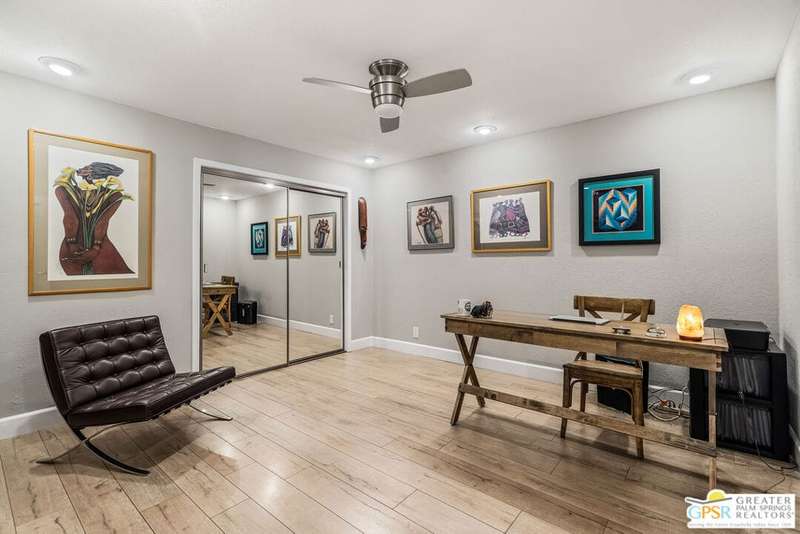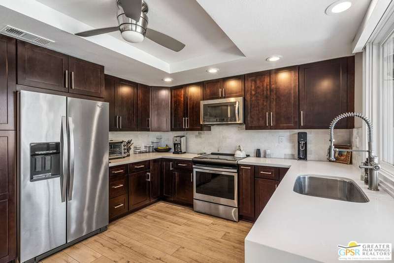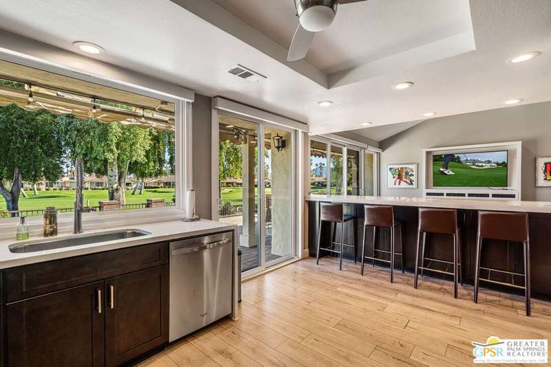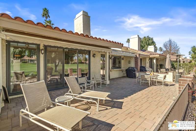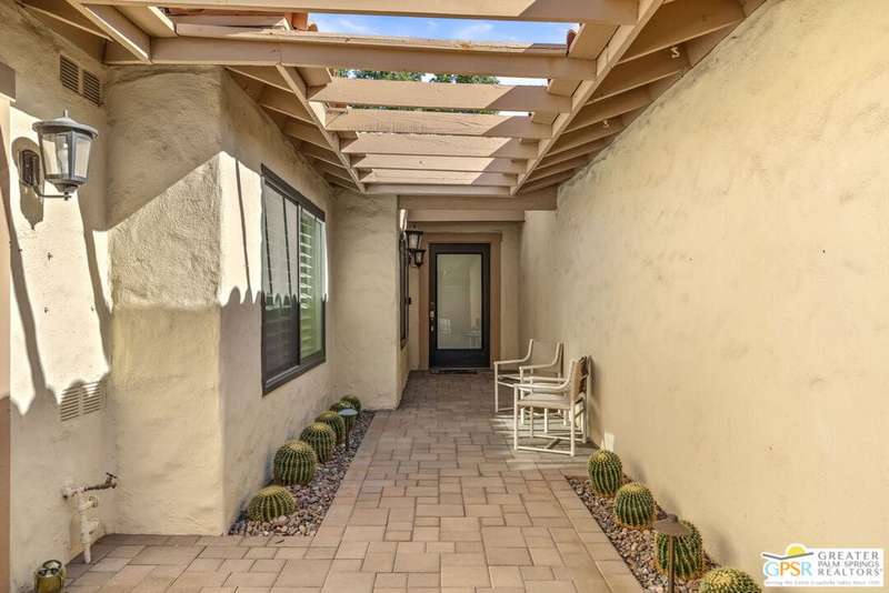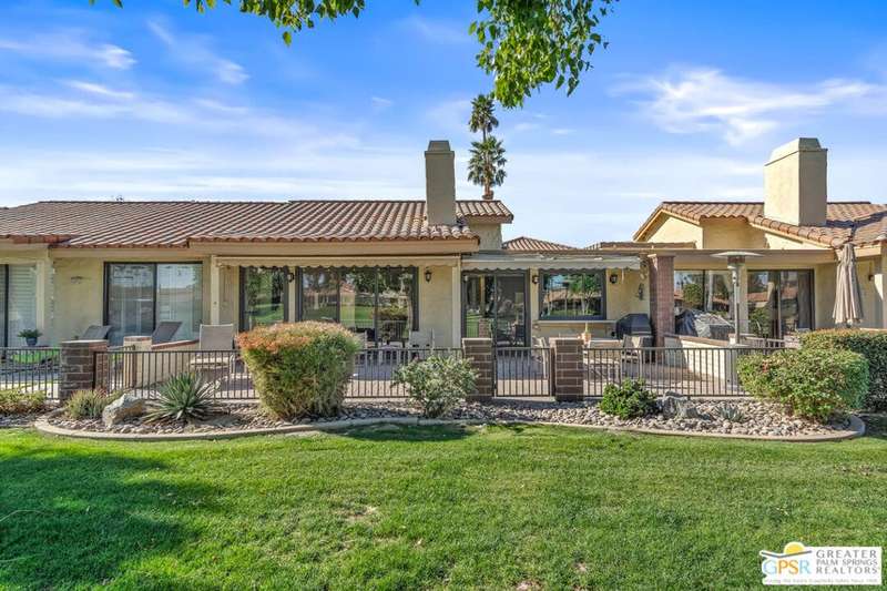 Welcome to your ultimate desert getaway in the highly desirable Monterey Country Club! This completely renovated 2 bedroom + Den, 2 bathroom condo combines modern luxury with serene living. Thoughtfully designed finishes throughout create a calming ambiance, making this home a true sanctuary. The main living space boasts soaring high ceilings, filling the home with an abundance of natural light and offering an airy, open feel. The beautifully updated kitchen features premium appliances, sleek cabinetry, and an elegant backsplash, perfect for cooking or entertaining. Both bathrooms have been upgraded with spa-like touches for ultimate comfort. Step outside to your private patio overlooking the golf course, where you'll enjoy breathtaking fairway views and peaceful desert sunsets. Whether sipping your morning coffee or hosting an al fresco dinner, this space is sure to become a favorite spot to relax and unwind. Situated in the heart of Palm Desert, Monterey Country Club offers resort-style living with 27 holes of golf, tennis, pickleball, fitness facilities, and multiple pools. Close to shopping, dining, and entertainment, this is the perfect place to embrace the desert lifestyle. Monterey CC allows Short Term Rentals which is a huge plus for owners looking to offset some of the ownership cost! Don't miss this opportunity to own a truly one-of-a-kind property in an unbeatable location. Includes all furnishings except for a few pieces of art! Golf cart is also available for purchase outside of escrow. Schedule your private tour today!