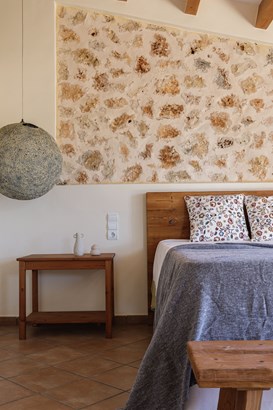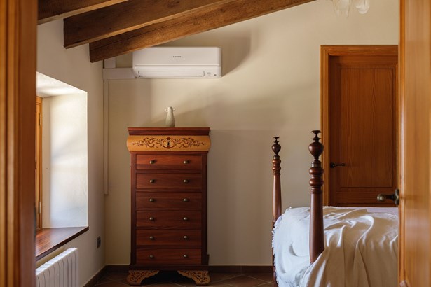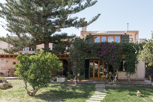 This authentic Majorcan country house on a large colorful plot in heart of the village of Llubí is surrounded by a lovely garden where you can pick your own lemons for the table.On entering the dwelling there is a large lobby area and a charming living room with a amazing fireplace room. Downstairs, the large kitchen and dining area is perfect to host a large family. Just opening the charming glass doors it is easy to create a smooth transition between indoors and outdoors. Not only is there plenty of storage space in the kitchen and a separate laundry room: from this cozy space there is a beautiful view of the swimming pool with a barbecue area to spend time al fresco.On the first floor there are two large bedrooms both with en-suite bathrooms. High ceilings with wooden beams dotate the spaces with a warm ambience. The master bedroom opens onto a large 15 sqm balcony from which to admire the village views. There is still more space as a white canvas to create a study, a playroom o