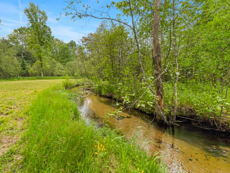 Tucked into 8+ wooded acres with nearly 1,000 feet of private First Creek frontage, this one-of-a-kind log home offers privacy, peace, and a front-row seat to nature's magic. Every corner of the property invites you to slow down - watch the salmon and steelhead run, wander the trails, or sit under the stars by the fire pit. Step inside and you're greeted by soaring ceilings, a grand fieldstone fireplace, and a floating log staircase that sets the tone for this custom-built retreat. The chef-ready kitchen blends rustic charm with modern function, while the wrap-around porch (with a cozy screened section) is made for morning coffee, evening drinks, and everything in between. Main-floor living includes a spacious primary suite with a bathroom, sauna, and tranquil views. Strong rental history and rental potential.