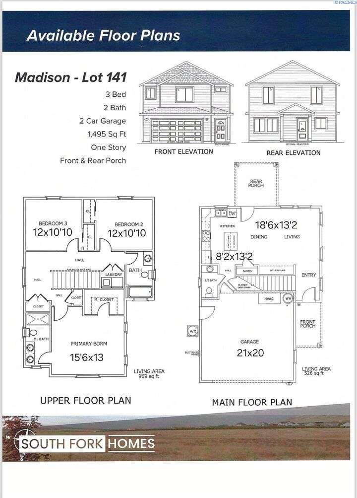 MLS# 284970 Welcome to The Madison on Lot #121. Quality, Energy Star, Stucco, New Construction Home for sale in South Orchard. This neighborhood boasts miles of scenic walking and bike paths, upcoming parks for recreational enjoyment, and proximity to soon-to-be-unveiled schools. South Fork Homes offers exquisite features as their standard with no additional costs including; quartz countertops, soft-close cabinetry, undermount kitchen sink, Moen Chrome fixtures, LVP flooring, and plush carpeted bedrooms. This 2-story home features 3 bedrooms and 3 baths and a fully finished 2 car garage with man-door to the outside. Enjoy the outdoors on your covered back porch overlooking fully landscaped yards both front and back, with full irrigation, lush greenery, and decorative rock accents. If Buyer comes in early enough they will have color and selection choices. All homes are Pre-Inspected by a third party WA State Lic. Home Inspector. The Inspection Report is available to buyers upon request. Any and all findings are remedied by builder prior to close. This is to provide further peace of mind and help save costs to buyers. Don't miss out – call today to explore more!