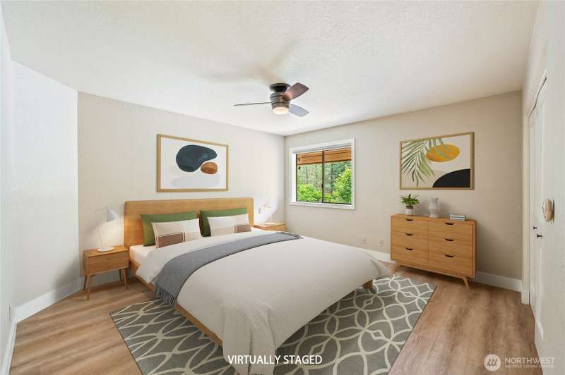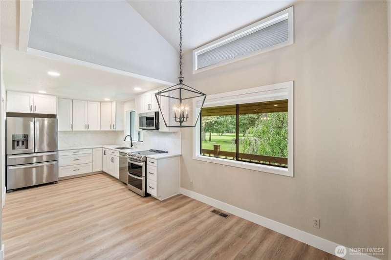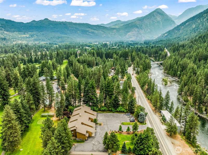Beautifully remodeled upper-level condo overlooking the 18th fairway—enjoy golf course views right from home! This spacious unit offers over 1,500 square feet of comfortable living, including a large primary suite with an extended closet for additional storage, primary bathroom with heated floors, and an open-concept living area with a cozy wood-burning fireplace. Step out onto the private, covered deck featuring a ceiling fan—perfect for relaxing or entertaining. In the winter, enjoy direct access to the golf course for cross-country skiing and sledding. Public river access is just down the road, with Icicle Canyon’s outdoor recreation close by. Extras include an attached carport, full garage, and plenty of guest parking.