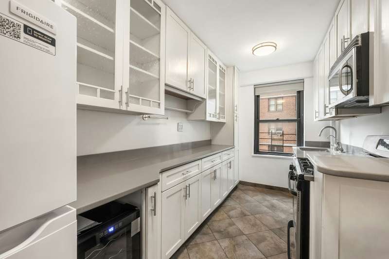 The nearly 11" x 18" living room is thoughtfully proportioned and showcases sweeping views of Midtown Manhattan. The windowed kitchen has been recently and fully renovated, while the entire apartment has been freshly painted and the floors polished.