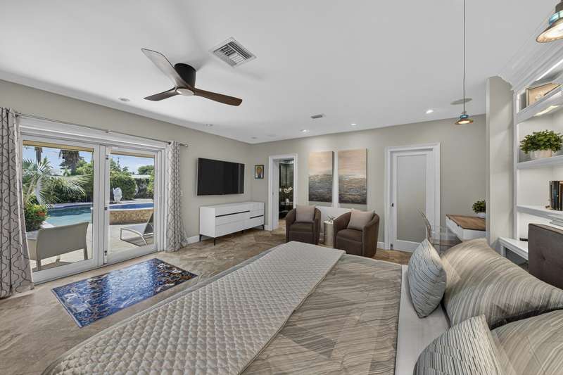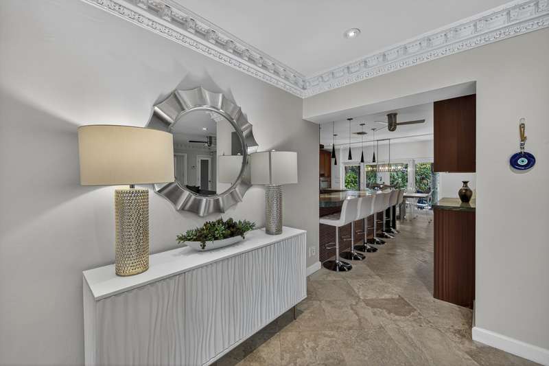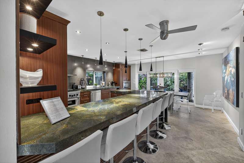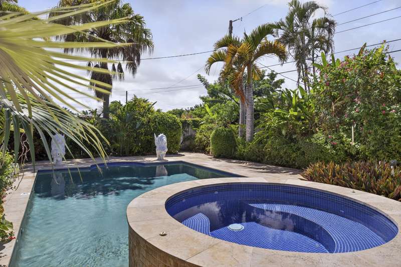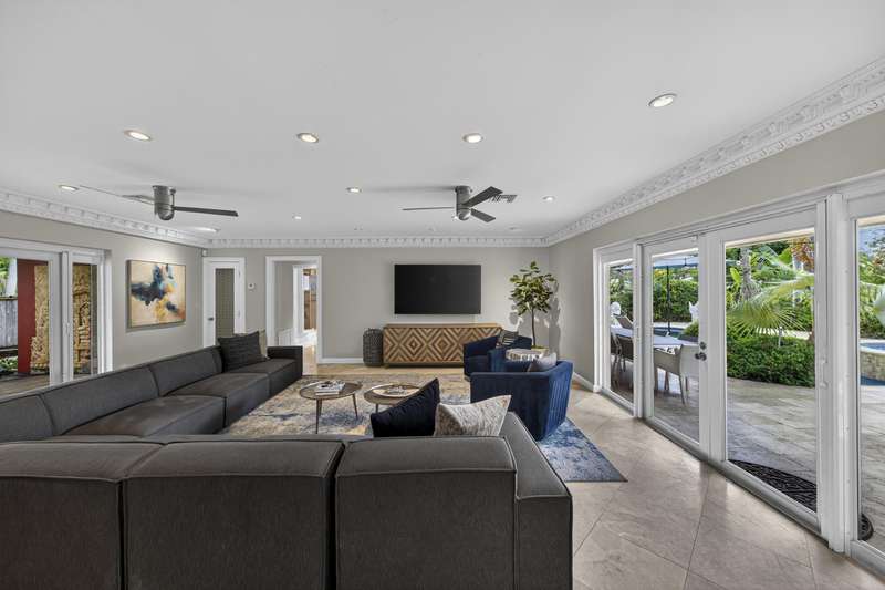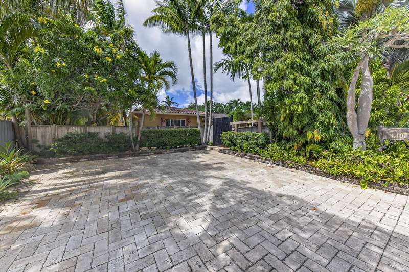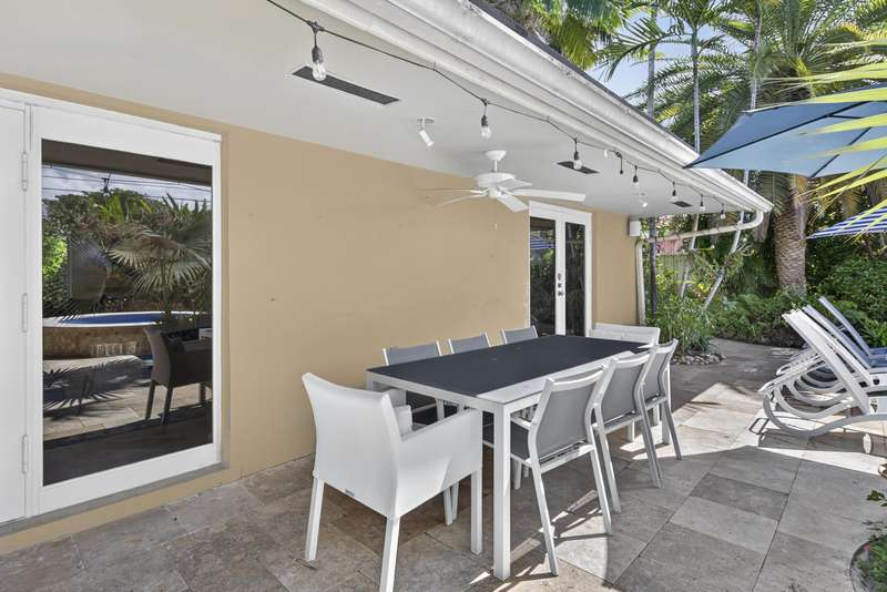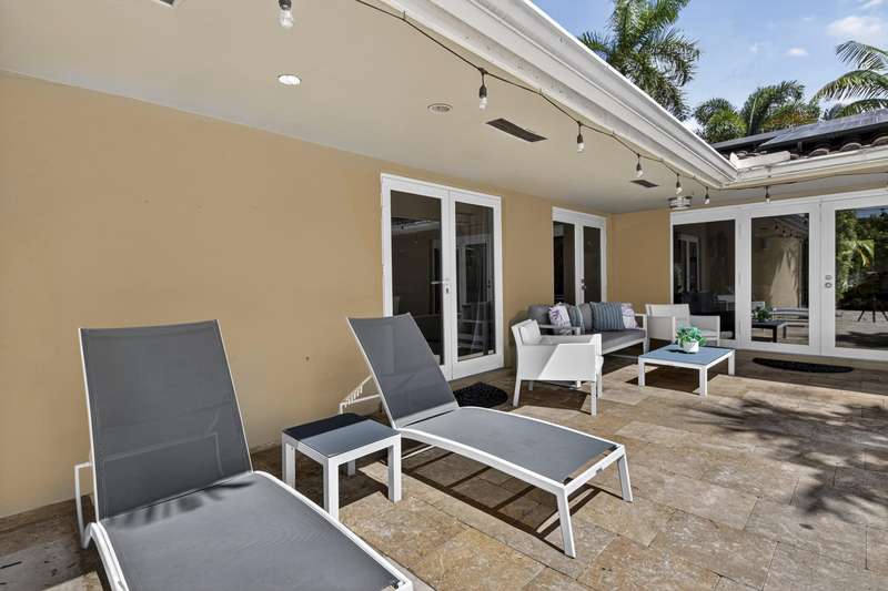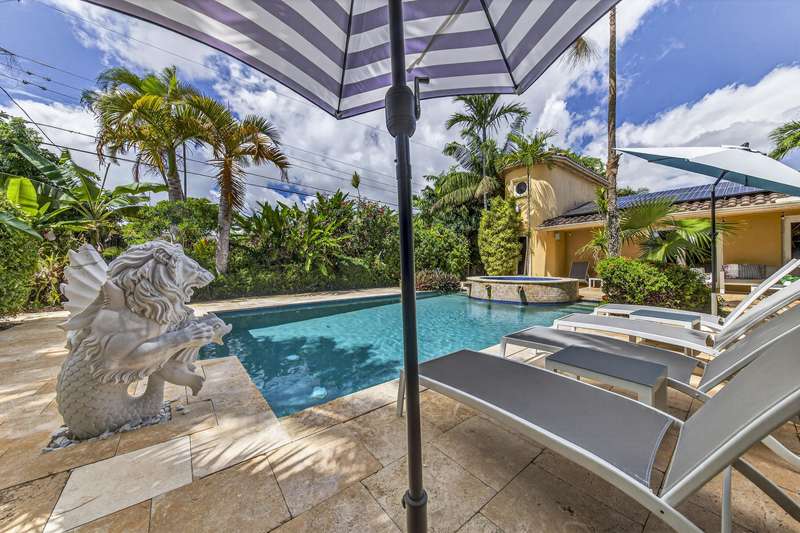 Discover this tropical paradise hidden gem in the heart of Fort Lauderdale. This stylish 4 bedroom, 2 bathroom furnished home features bright, open living spaces, gourmet chef's kitchen, built in closets, and modern finishes. Both bathrooms include walk-in, roll-in showers for comfort, accessibility and a touch of spa like luxury. Enjoy an expansive backyard oasis with sparkling, heated pool, hot tub and extensive outdoor seating, ideal for sun soaked afternoons, evening cocktails or dining under the stars. The front boasts a lush tropical patio with beautiful fountain, creating a serene welcome as well as a wonderful setting for morning coffee or peaceful relaxation. Located minutes from beaches, boating, dining and nightlife, this one captures the best of South Florida living.