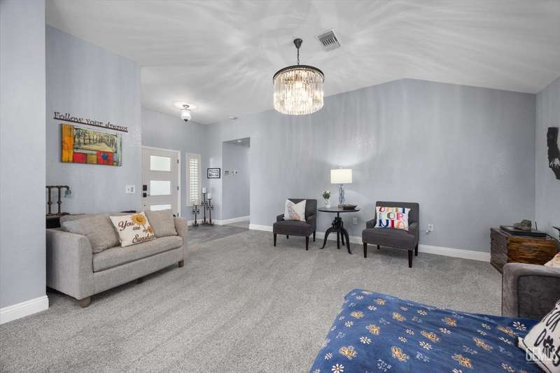 Welcome to Almond Crest Estates, where this beautifully updated home is truly move-in ready! From the moment you step inside, you'll notice the fresh feel of newer paint, plush carpet, upgraded baseboards, and stylish light fixtures throughout. The bathrooms have all been tastefully remodeled within the past four years, offering a modern touch. The kitchen is perfect for creating memorable meals, while the great room invites cozy evenings gathered around the fireplace. Step outside and discover your own backyard retreatfeaturing a newly resurfaced sparkling pool with a sheer descent waterfall, new pool sweep, and plenty of space for summer fun. A custom iron gate adds both privacy and charm, with convenient RV parking available. Major updates bring peace of mind, including a newer septic system, energy-efficient AC unit, and PPA solar to help keep costs low. All the big-ticket items have been taken care ofleaving you free to simply move in and relax for years to come.