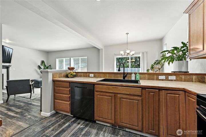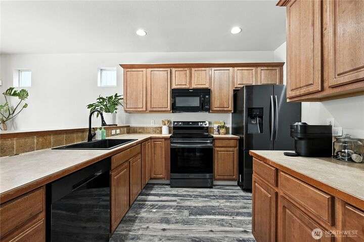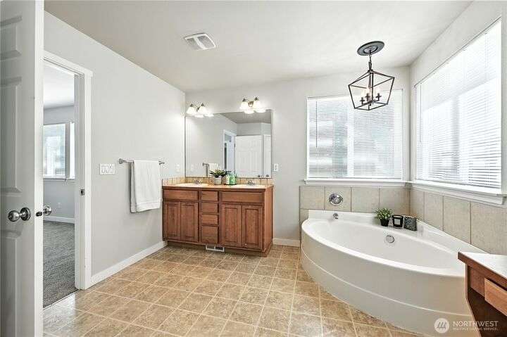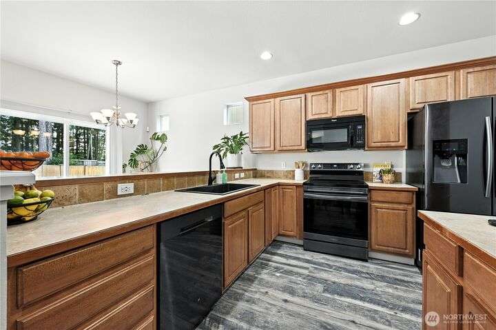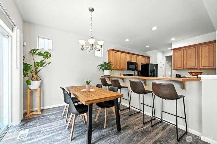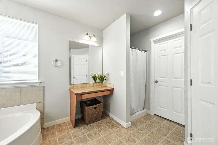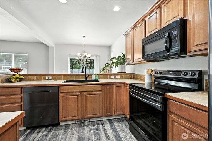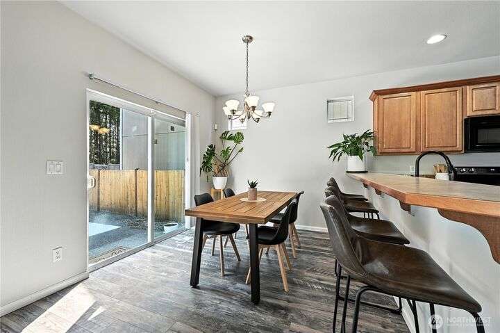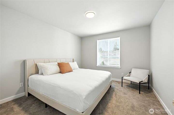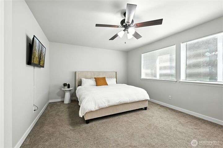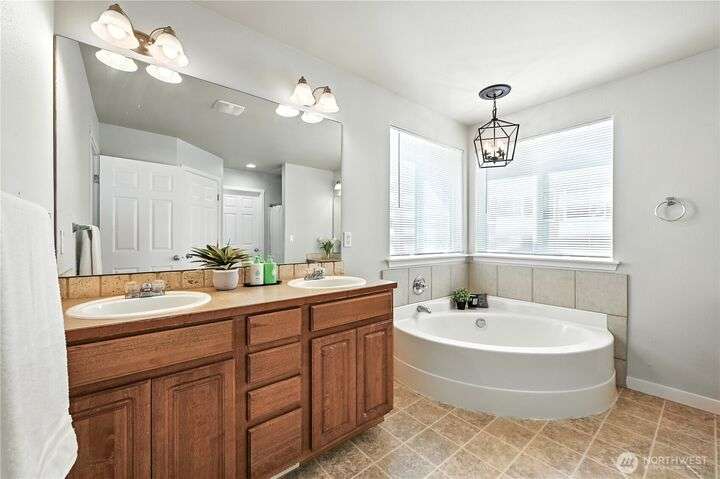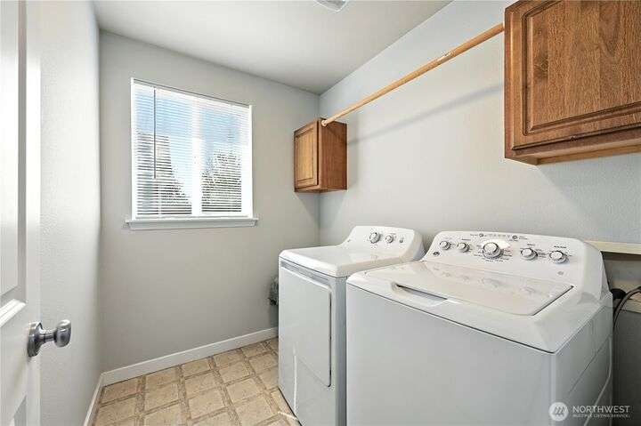 Don’t miss this updated and move-in ready 3-bedroom + den home! Recent updates completed in the last few years include fresh interior paint, carpet, stylish vinyl plank flooring, window coverings and newly redone lawn & patio. The soaring ceilings and open layout set the stage for gatherings, while the cozy living room fireplace brings warmth and comfort. Enjoy the refreshing AC on those hot summer days. The upstairs primary suite offers a large walk-in closet and private bath, joined by a loft and two spacious bedrooms. Convenient upstairs laundry room. Step outside to your fully fenced backyard retreat with direct access to scenic neighborhood walking trails. All this in a prime location close to shopping, dining, and JBLM. Welcome home!