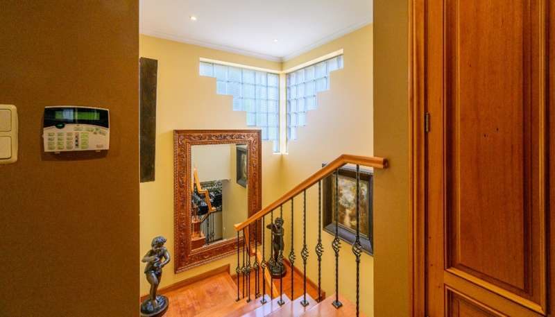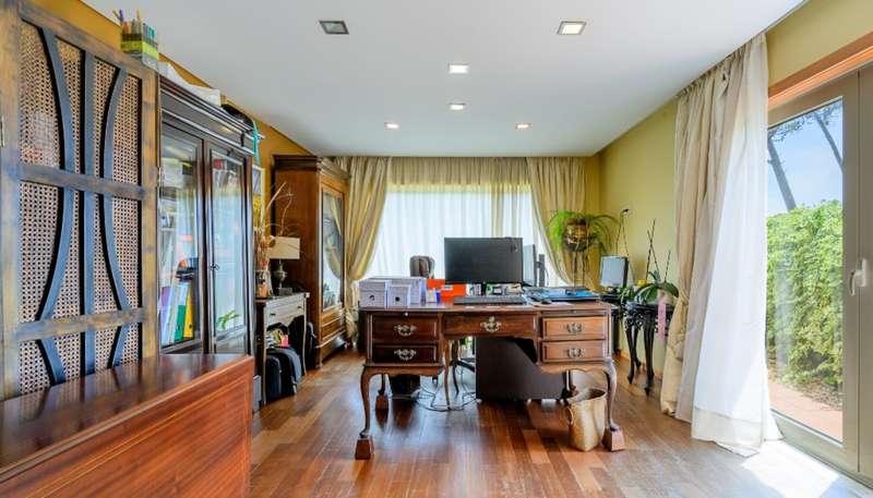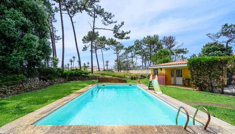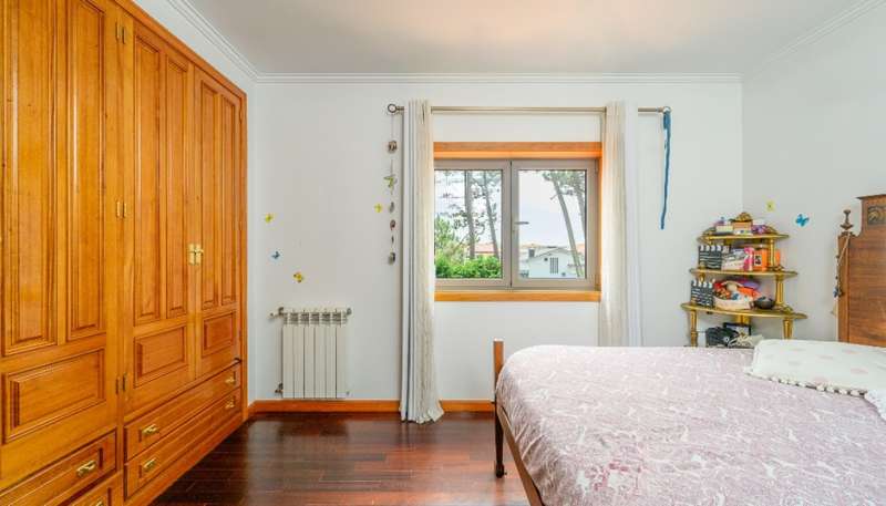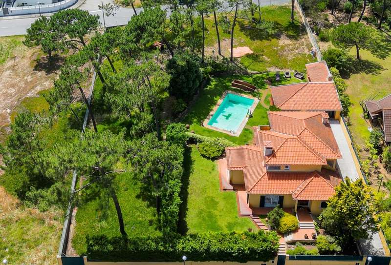Excellent four-bedroom villa with pool and garden, located in the Pinhal da Aberta urbanization in Esmoriz. Set on a plot of 1,382 m2 and 600 meters from the beach, it has three floors and is surrounded by a wonderful garden and trees, in a quiet and peaceful area. The ground floor houses two living rooms and a kitchen, as well as a bedroom and a bathroom, and gives access to the garden with swimming pool, the porch with barbecue and outdoor dining area and the laundry room. On the upper floor there are three bedrooms - all with balconies, good sun exposure and plenty of light - one of which is en suite, plus a bathroom. Finally, the basement has a lounge and storage space. The villa has central heating and is located in a quiet area, surrounded by sun, greenery and the sea. Good access to the highway, 35 minutes from Sá Carneiro Airport. CHARACTERISTICS: Plot Area: 1 382 m2 | 14 876 sq ft Deployment Area: 219 m2 | 2 357 sq ft Building Area: 459 m2 | 4 941 sq ft Bedrooms: 4 Bathrooms: 3 Energy efficiency: C
