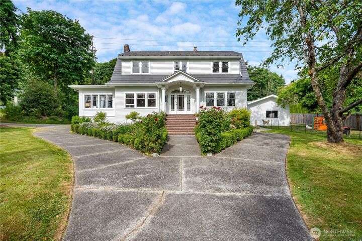 [KILLIEN DUTCH COLONIAL HOUSE CIRCA 1924] This property shines w/classic craftsmanship & updates. Grand entry w/open stairway set a welcoming tone, leading to high ceilings & spacious rooms throughout. Main Floor Features: Formal dining, kitchen w/shaker-style cabinets, quartz countertops & SS appliances. Expansive sunroom perfect for capturing morning light, dedicated den/office space, Convenient 1/2 bth and laundry room. Upper Level: 4 generous sized bdrms & Full bth. Additional Spaces: Unfinished 1232 sq ft daylight bsmt ideal for storage or finishing as extra living space. Detached garage w/soaring 14+ft ceilings & electric car charger. Separate structure w/endless possibilities, whether for a workshop, studio, office,or MIL conversion.