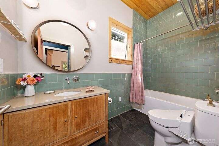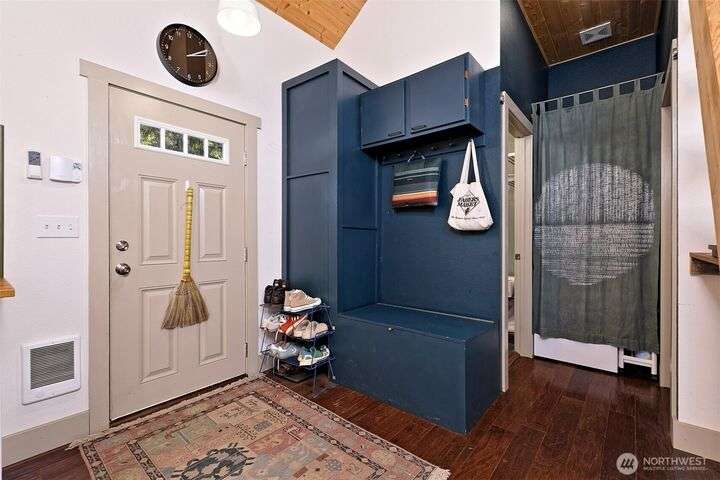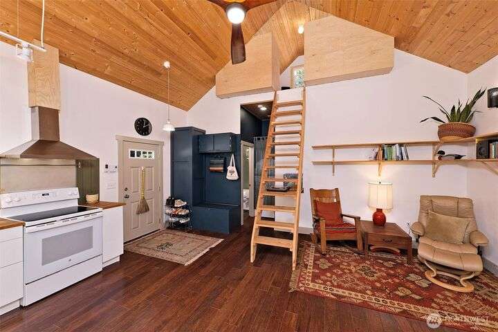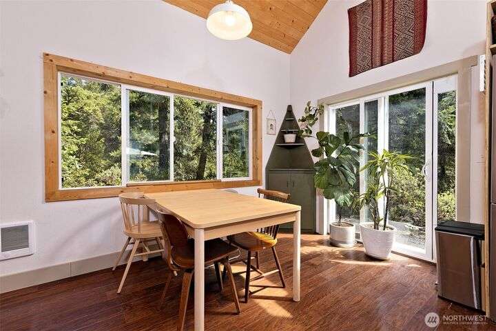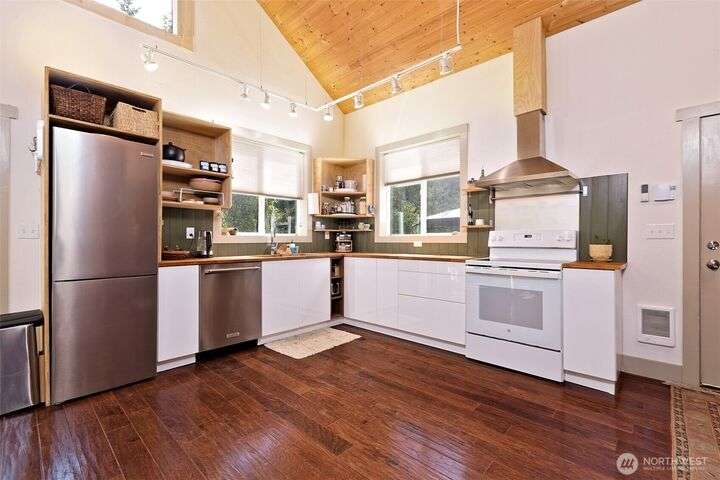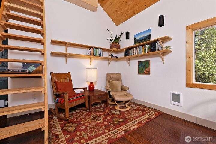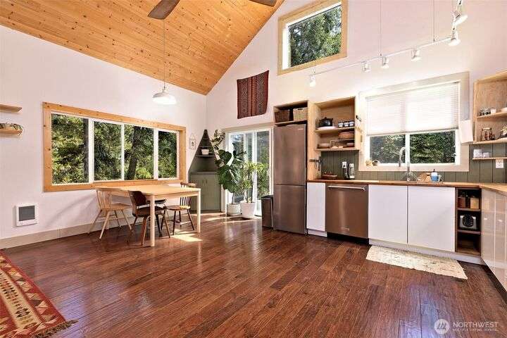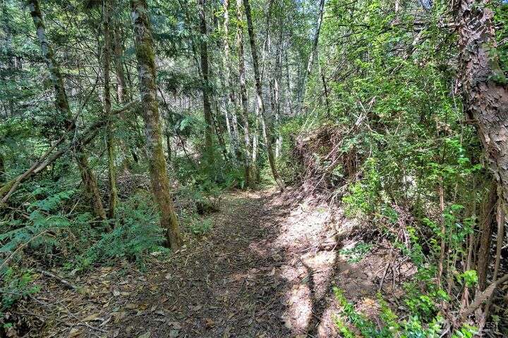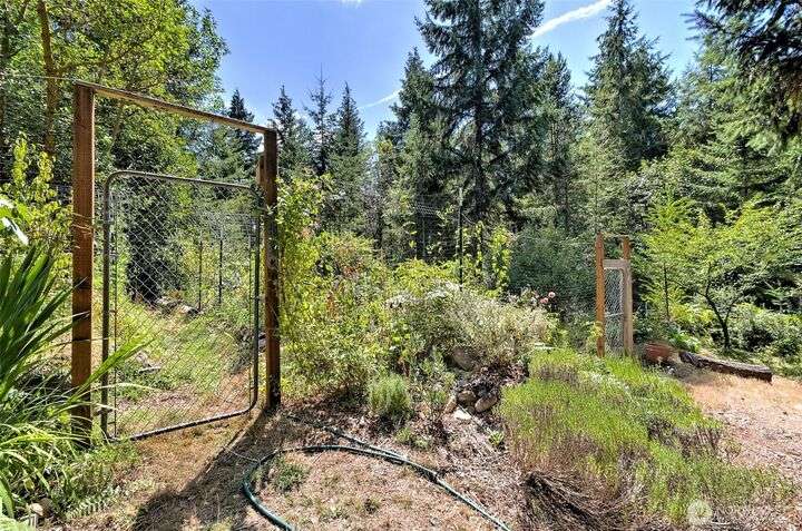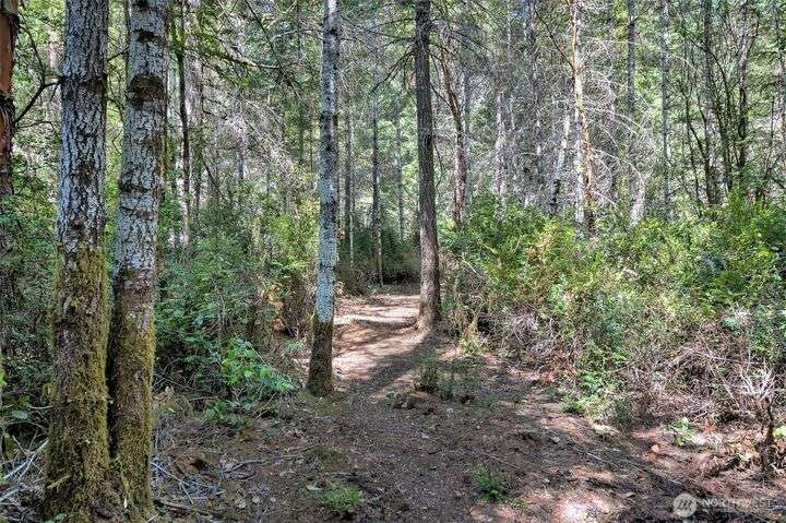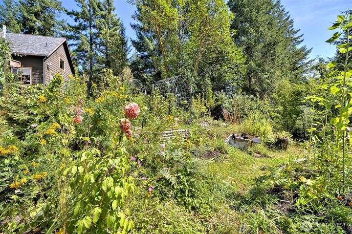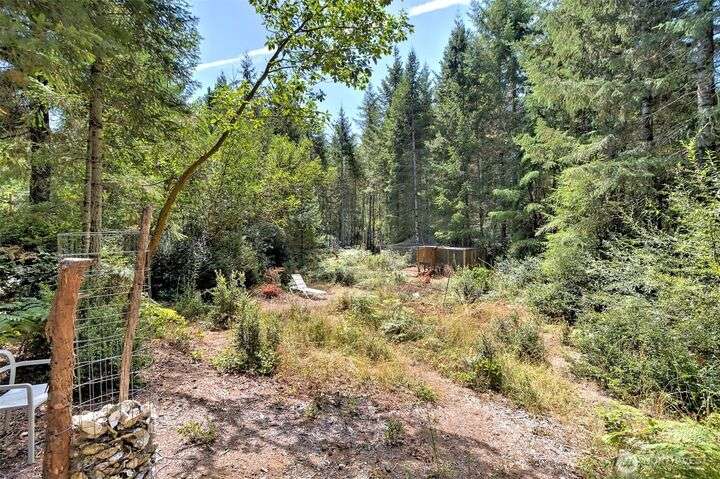 This very cool cabin located on almost 3 acres sits on top of a hill just across the road from Mason Lake & offers great privacy but has wonderful access to all the things! This compact home features a great primary bedroom on the main level, a loft for additional sleeping or office/den & a big open living, kitchen & dining area that has high vaulted ceilings & tons of light. The finishing touches are really nicely done as the photos show. All of the appliances are included so just pack your bags and move on in! You will love the property! From the great garden area to the little spots and trails throughout that make great hideaways to read or just sit & enjoy the natural beauty. Might be able to open up a lake view with tree trimming!
