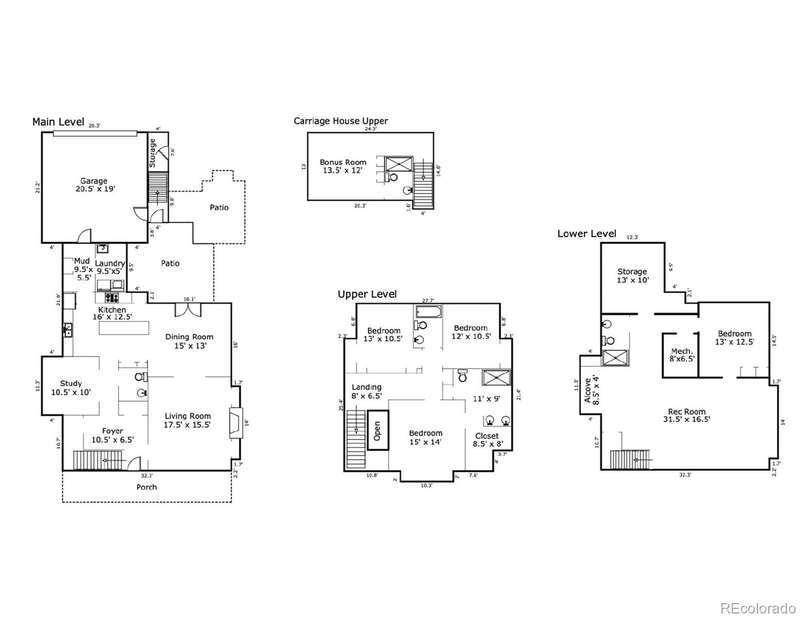www.11776Perry.com - PRICE IMPROVEMENT - Located directly across from Bradburn Green park in the idyllic Bradburn Village, this Craftsman-style home was previously featured on the cover of 5280 Magazine and includes a carriage house! Dont miss your chance to own one of the first, and few, truly custom homes in this neighborhood. Recent upgrades include NEW STUCCO FACING W/NEW EXTERIOR PAINT, NEWER ROOF and REFINISHED WOOD FLOORS. The inviting covered front porch with wood beams welcome you into a home filled with natural light, hardwood floors, and beautiful millwork throughout. The spacious open floor plan connects the living roomcomplete with built-ins and a gas fireplaceto the elegant dining room and updated kitchen. The kitchen features new Quartz countertops, white shaker cabinets, stainless steel appliances, a gas range, and direct access to a private patio and garden area, perfect for entertaining. The main floor office with French doors and built-ins is ideal for a secluded and quiet work space. A stylish powder room, mudroom, and oversized laundry room with utility sink and dog door add convenience on the main floor. Upstairs, a luxurious primary suite includes a walk-in closet, and a newly renovated spa-like bathroom with heated floors, a large walk-in shower, towel warmer, and extra storage. Two additional bedrooms with large closets and a full bath complete the second level. The finished basement offers a large bonus room, a fourth bedroom, a bathroom with slate flooring and storage room. A carriage house with a private entrance located above the garage is stylishly appointed with floor-to-ceiling bookcases, and features a full bathideal for a home office, wellness area, guest suite or nanny's quarters. Bradburn Village truly offers it all with a neighborhood pool, tennis/basketball court and clubhouse conveniently located to dining and retail along with access to recreation centers, trails and open space.