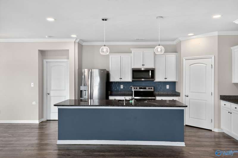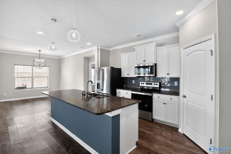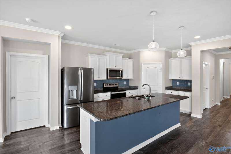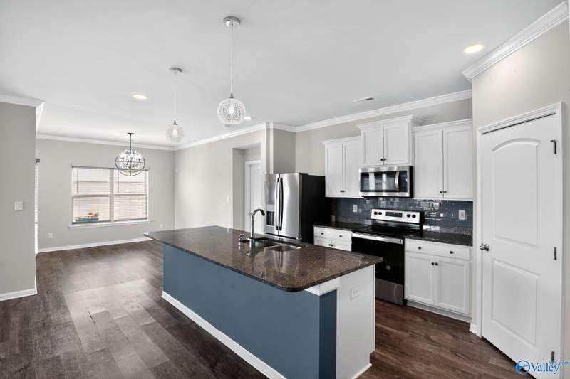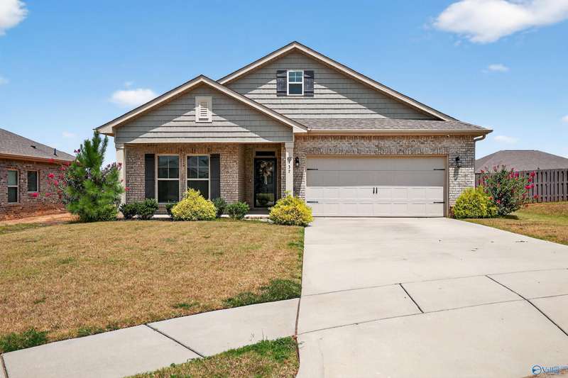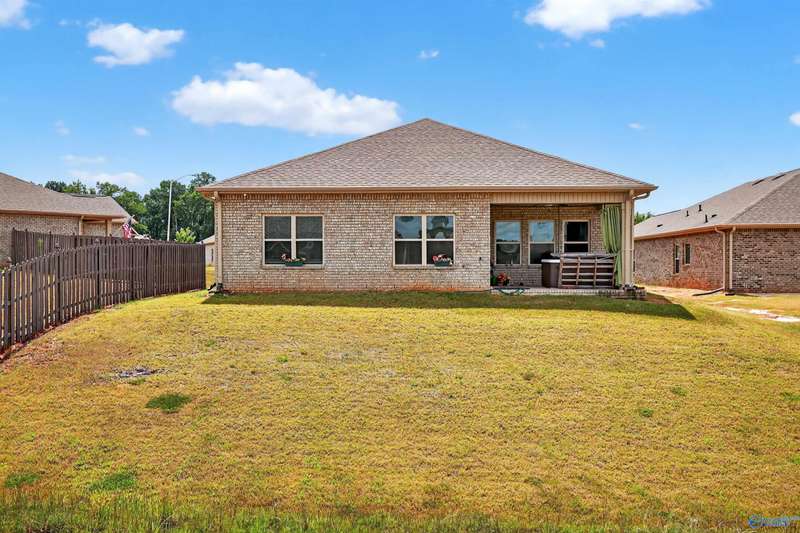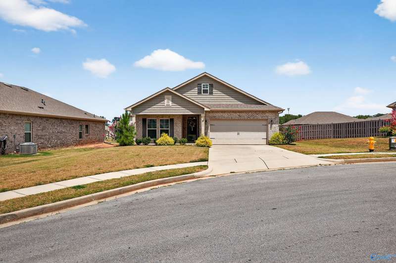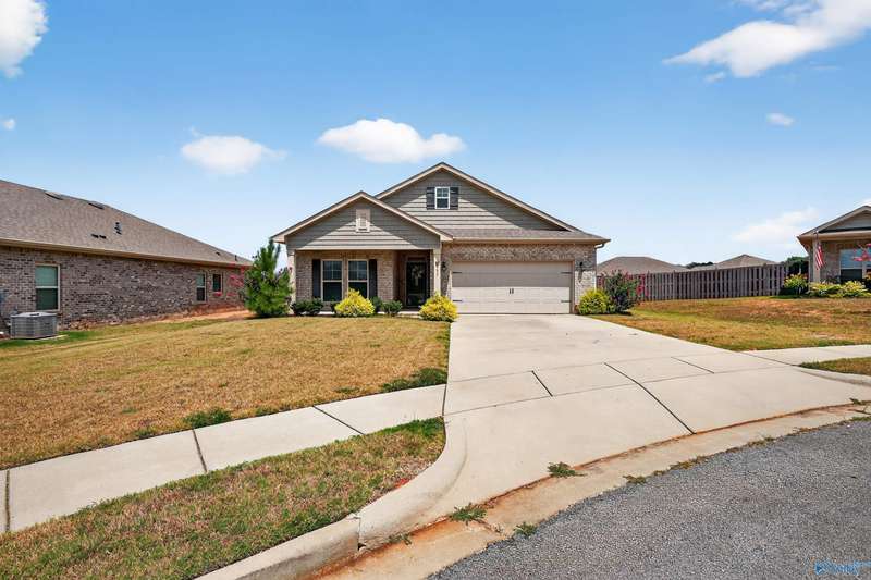 This 4-bedroom, 3-bath home offers both convenience and privacy in a quiet cul-de-sac. The open floor plan features a welcoming foyer, a spacious family room with a stone fireplace and custom mantel, and a spacious kitchen with white cabinetry, granite countertops, stainless steel appliances, and a large island with space for seating. The owner’s suite includes a walk-in closet, wide shower, and dual vanity. A covered patio with private hot tub and a spacious backyard creates an ideal retreat. Located near Hwy 72 and Madison’s shopping and dining.