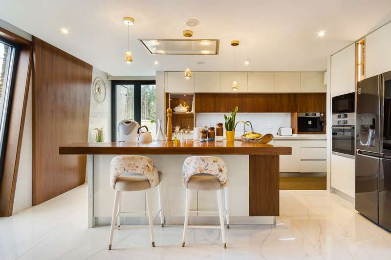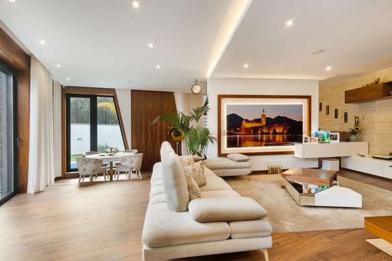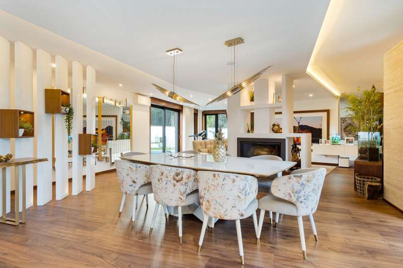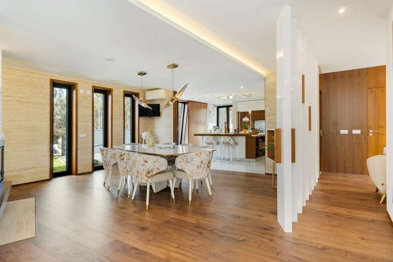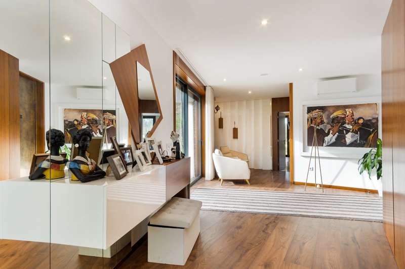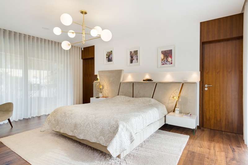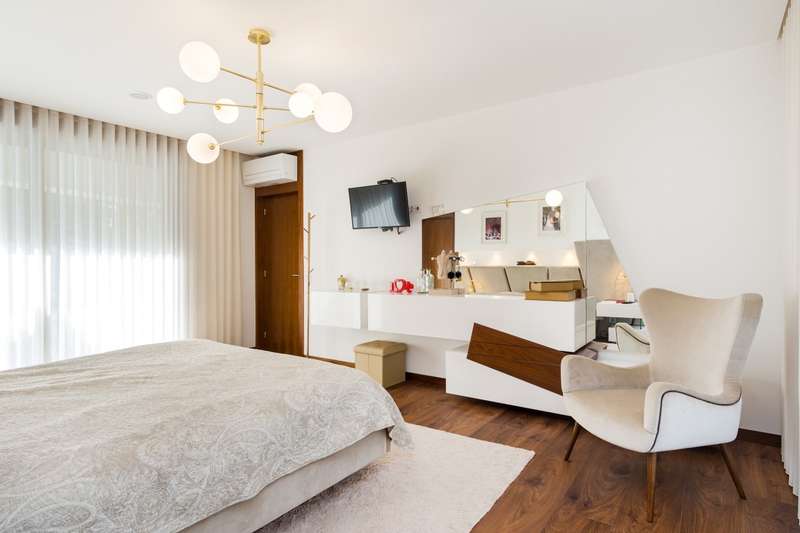 In Ovar, for sale is a distinguished luxury villa with four facades and outstanding construction quality that favours light, comfort, and tranquilly. This villa's expansive spaces and opulent embellishments, such as wood and natural stone, create a distinctive ambiance. Large windows and balconies saturate the house with natural light and facilitate interaction with the outdoors. In the main house, there are a spacious open-plan living room and kitchen, a living room, a games room with a bar and a guest toilet. The private area of the property contains three bedrooms with en suite bathrooms and an office. In addition, there is a three-car garage and a storage room. The exterior features a guesthouse, barbecue with dining area, heated swimming pool, playground, yard and a large garden surrounding the home, which is situated on a 2987m2 lot. The guesthouse has a local accommodation licence, a living room, kitchen, suite, swimming pool and landscaped outdoor space. Equipped with a reinforced door, ambient sound, triple glazing, electric thermal blinds, solar and photovoltaic panels, and air conditioning. The hotel is situated in a tranquil area, near to shops, services, and excellent highway access, and is only 10 minutes from the beach. CHARACTERISTICS: Plot Area: 2 987 m2 | 32 152 sq ft Deployment Area: 359 m2 | 3 862 sq ft Building Area: 359 m2 | 3 862 sq ft Bedrooms: 4 Bathrooms: 5 Garage: 3 Energy efficiency: A+ FEATURES: 4-Bedroom's House Guest House Garden Barbecue Heated pool Playground Backyard Air Conditioning Indoor and outdoor video surveillance Interior and exterior alarm Indoor and outdoor sound system Laundry