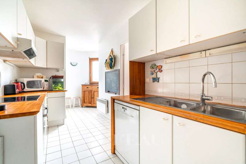 Les Passages neighbourhood, near the shops, the schools and the transport networks. This dual-aspect apartment enjoying open views is on the 5th and 6th floors of a recent building. Offering 171.57 sqm of living space as defined by the Carrez Law, it includes a bright and spacious living/reception room opening onto a 10 sqm west-facing terrace, a dining room, a separate kitchen, two bedrooms (one opening onto a balcony), and a bathroom. Upstairs are 4 further bedrooms opening onto balconies, a bathroom and a shower room. Ample fitted storage space. With two basement parking spaces.