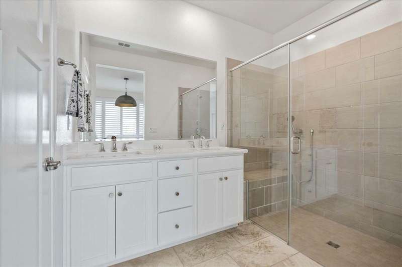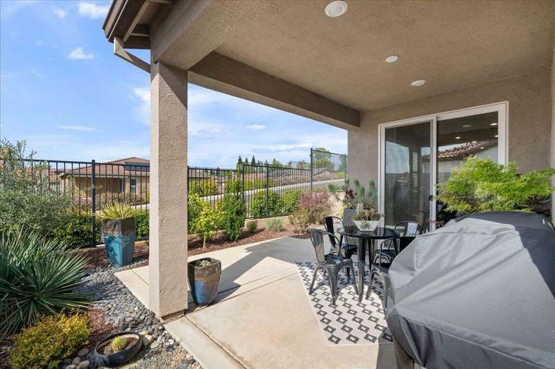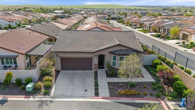 This stunning home sits on a generous cul-de-sac lot in the highly desirable Heritage El Dorado Hills 55+ gated community. Part of the Reflections Collection, it features an upgraded exterior elevation that enhances its curb appeal and a floor plan that lives larger than its square footage. The heart of the home is a spacious great room that is perfect for everyday living & effortless entertaining. The kitchen is a chef's delight with shaker cabinets, quartz countertop, a full-height subway tile backsplash, & GE Profile stainless steel appliances. A large dining bar seats four, and the sunny breakfast nook is a cozy place to enjoy your morning coffee. Upgrades throughout the home include rich engineered hardwood flooring, large tile flooring in the bathrooms, Hunter Douglas shutters, & designer light fixtures. The primary suite features an abundance of windows, quartz counters, & a curbless walk-in shower with a built-in bench & dual showerheads. Enjoy peaceful sunset views from your back patio & beautifully landscaped backyard, with a wrought iron fence that opens up the space. Owned solar keeps energy bills extremely low! The resort lifestyle awaits you with 2 private clubhouses, pools, fitness centers, pickleball, tennis, bocce ball, walking trails, activities galore, & more!